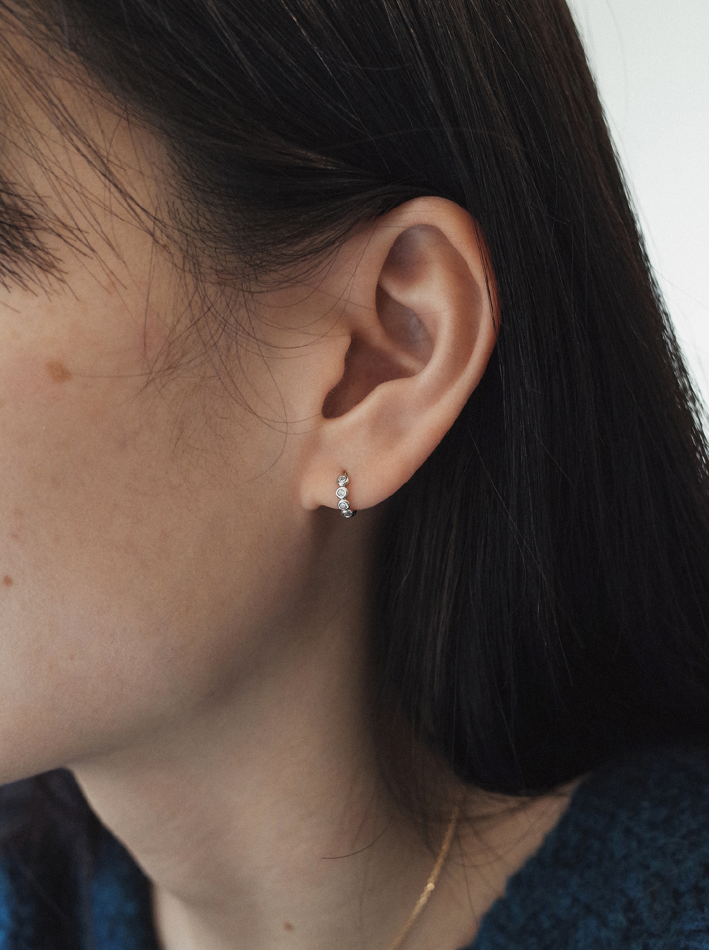 단정하게 스톤이 세팅된 아담한 사이즈의 아그네스 이어링