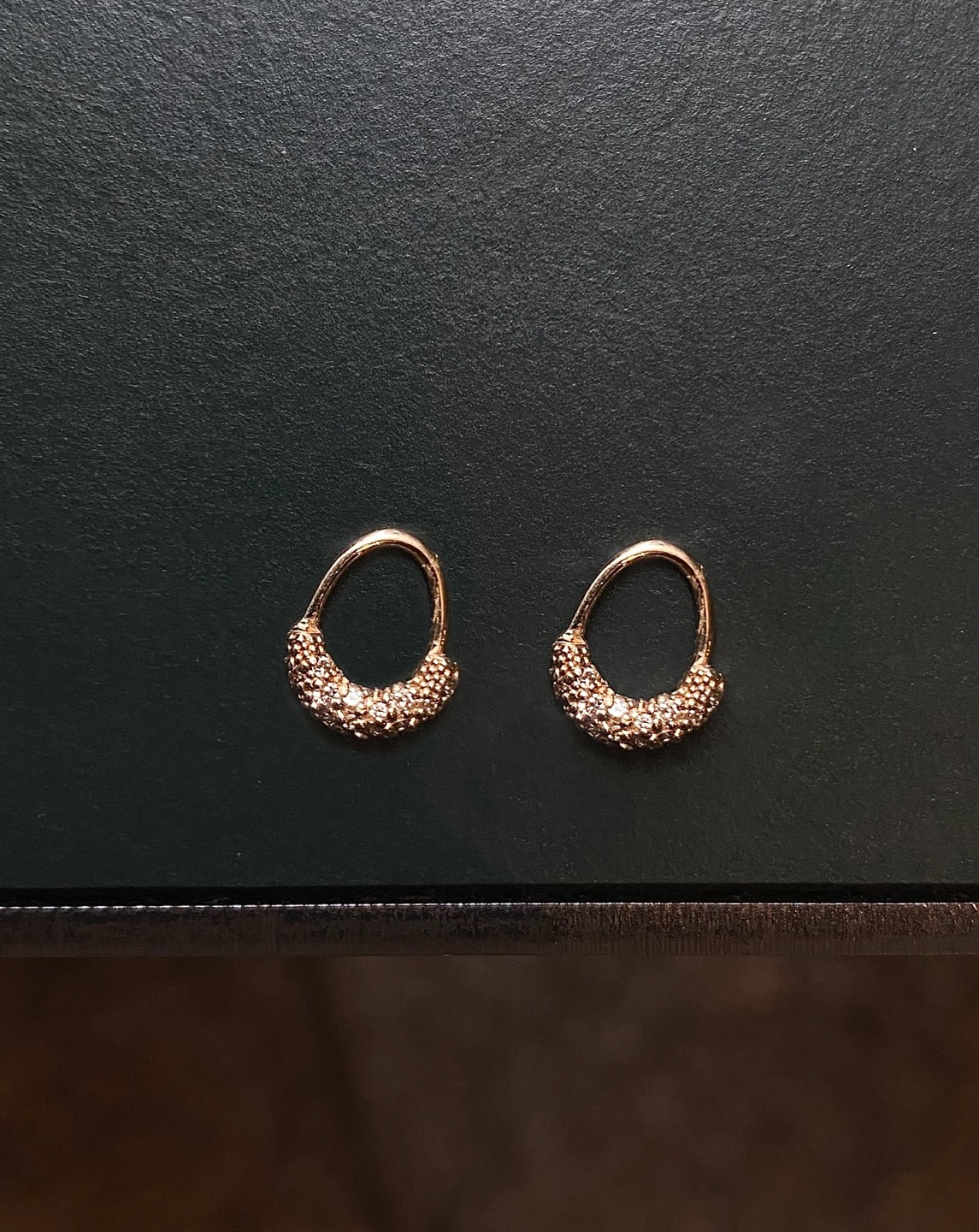 거칠고 울퉁불퉁한 돌 표면 사이에 다이아를 랜덤하게 세팅한 이어링
