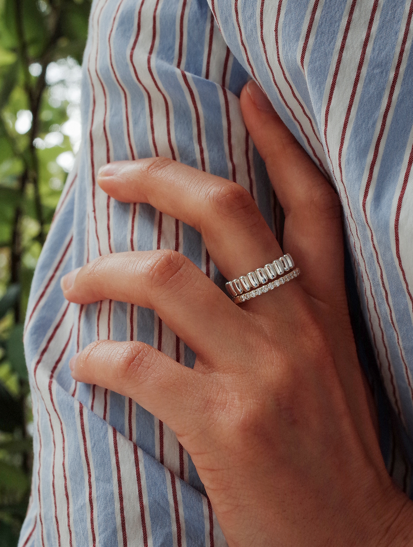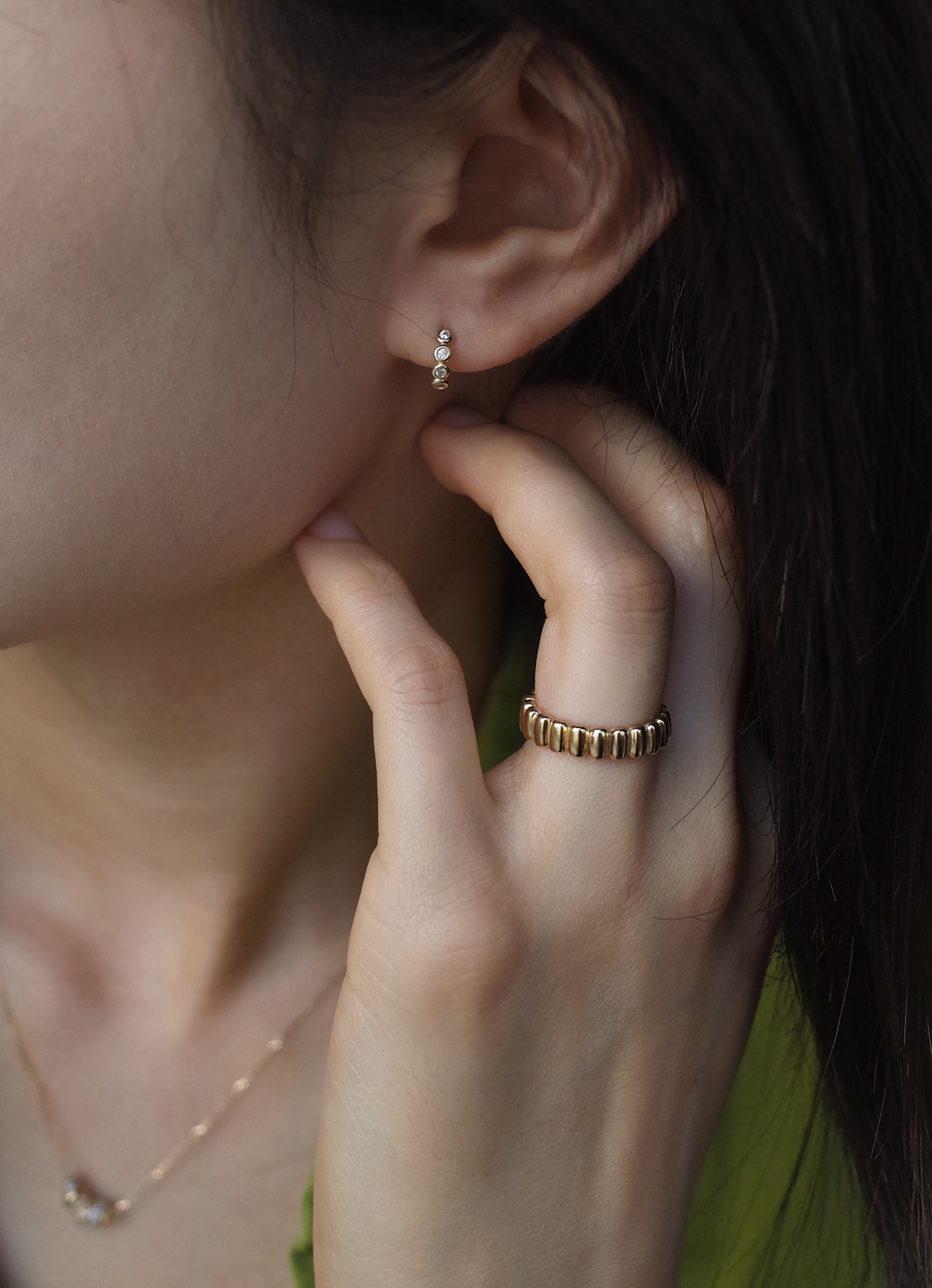 볼륨감있는 완만한 곡선 쉐입의 샬롯은 정교하게 다듬어진 패턴형 디자인으로 다양한 각도에서 아름다운 형태를 유지합니다. 샬롯 링은 우대 안부분까지 밀도를 높여 착용감이 매우 편안한 것이 특징이며 군더더기 없는 형태의 밴드 링으로 레이어드하기에도 용이한 제품입니다.