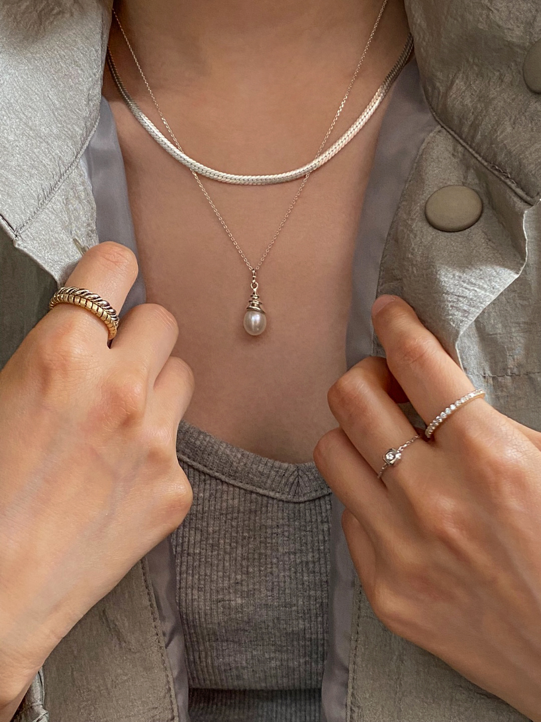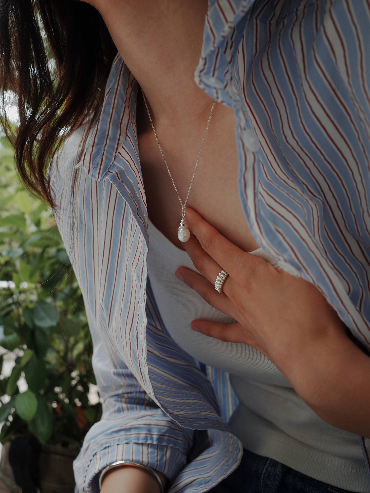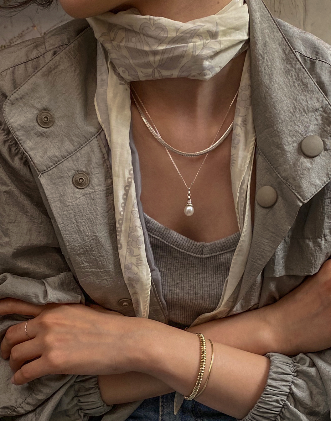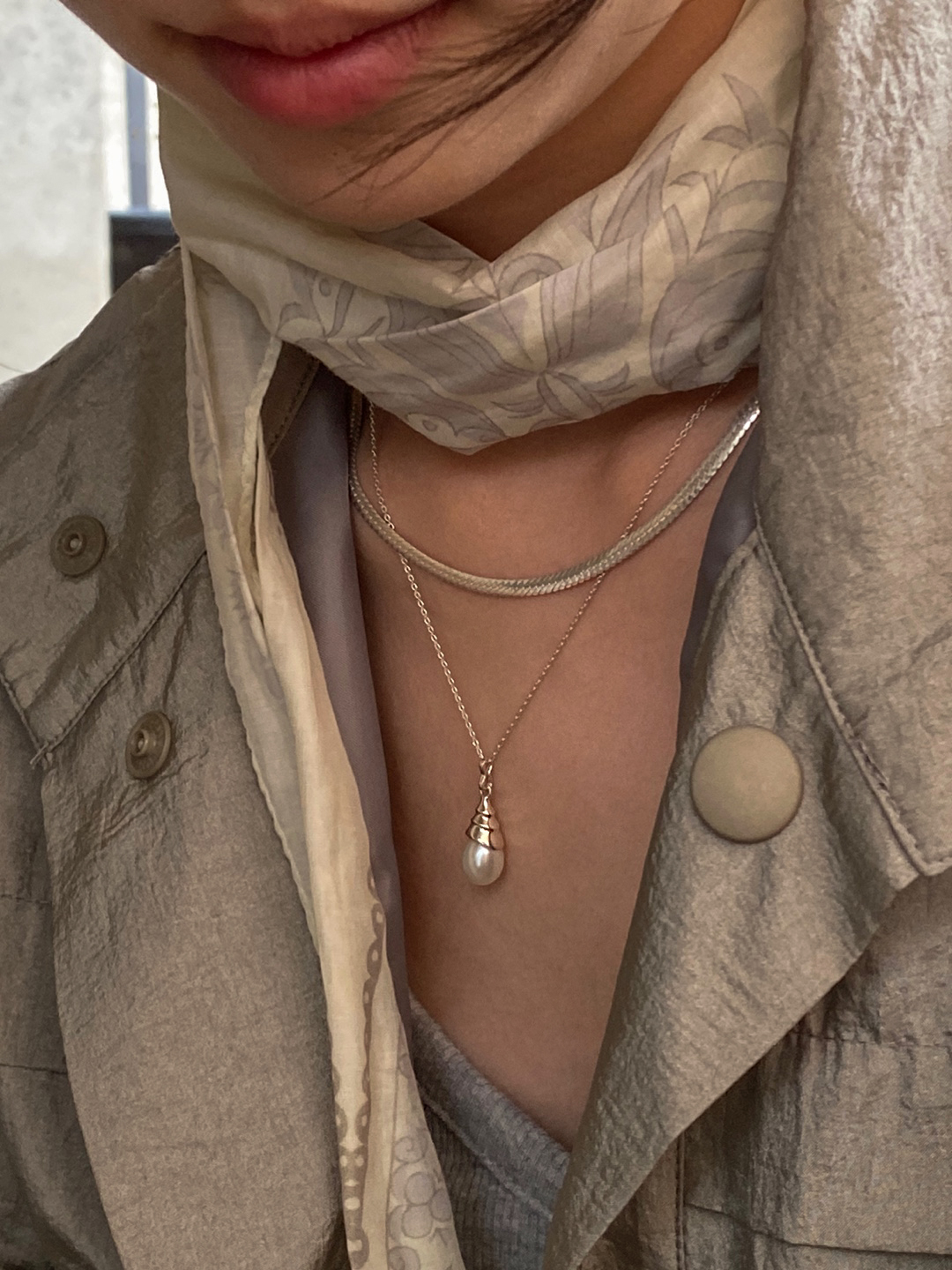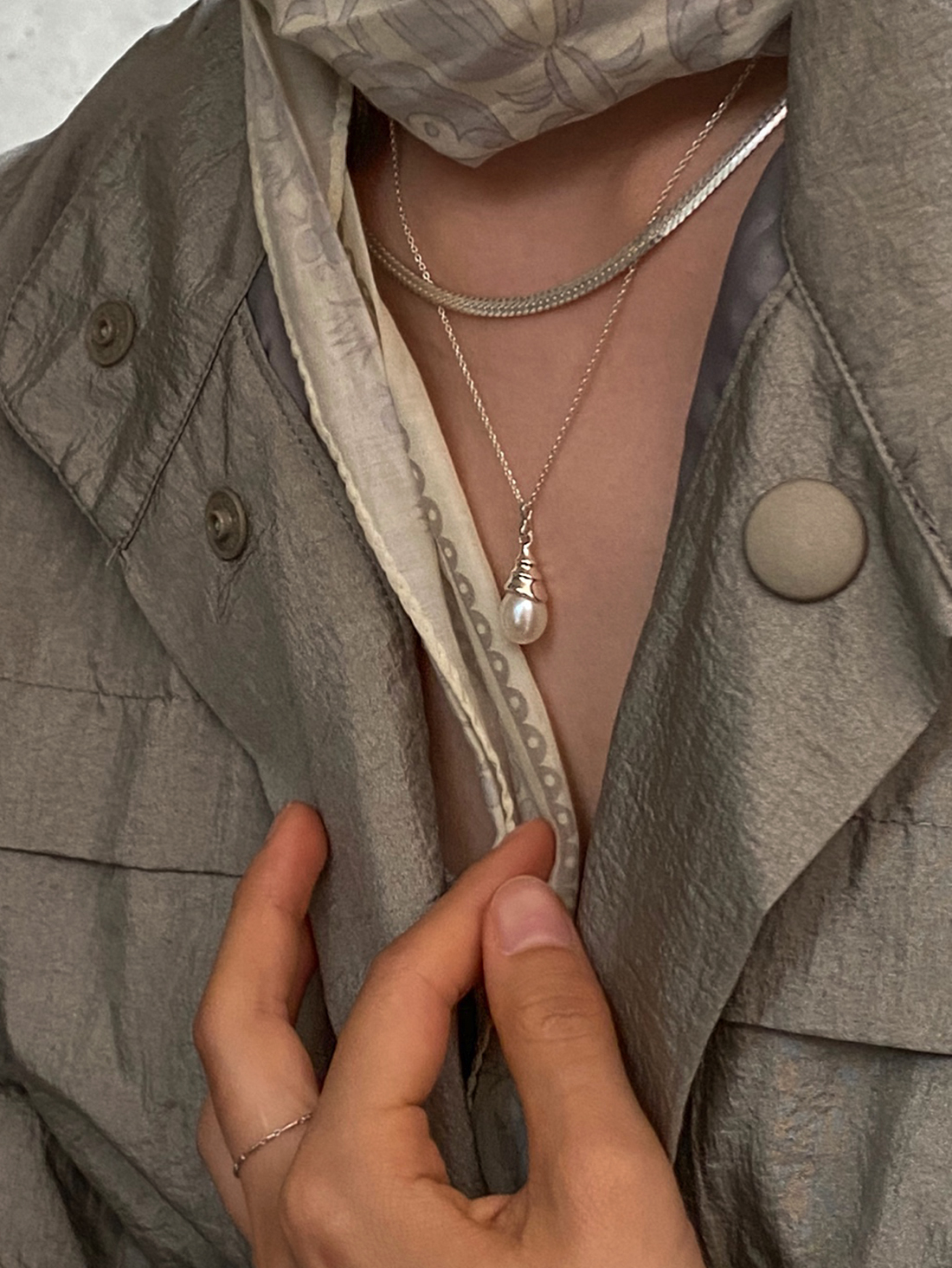 오랜 세월의 흔적이 담긴 팔레르모의 건축 양식에서 영감을 받아 제작한 팬던트 네크리스입니다. 전체적인 흐름이 자연스레 연결되는 곡선 쉐입 디자인으로 체인이 통과되는 유닛에 포인트를 주어 옆면에서도 아름다운 외형을 자랑합니다. 클리어한 백수정과 연기가 자욱한 듯 반투명한 연수정, 클래식한 담수진주 세 가지 원석으로 준비되었습니다.