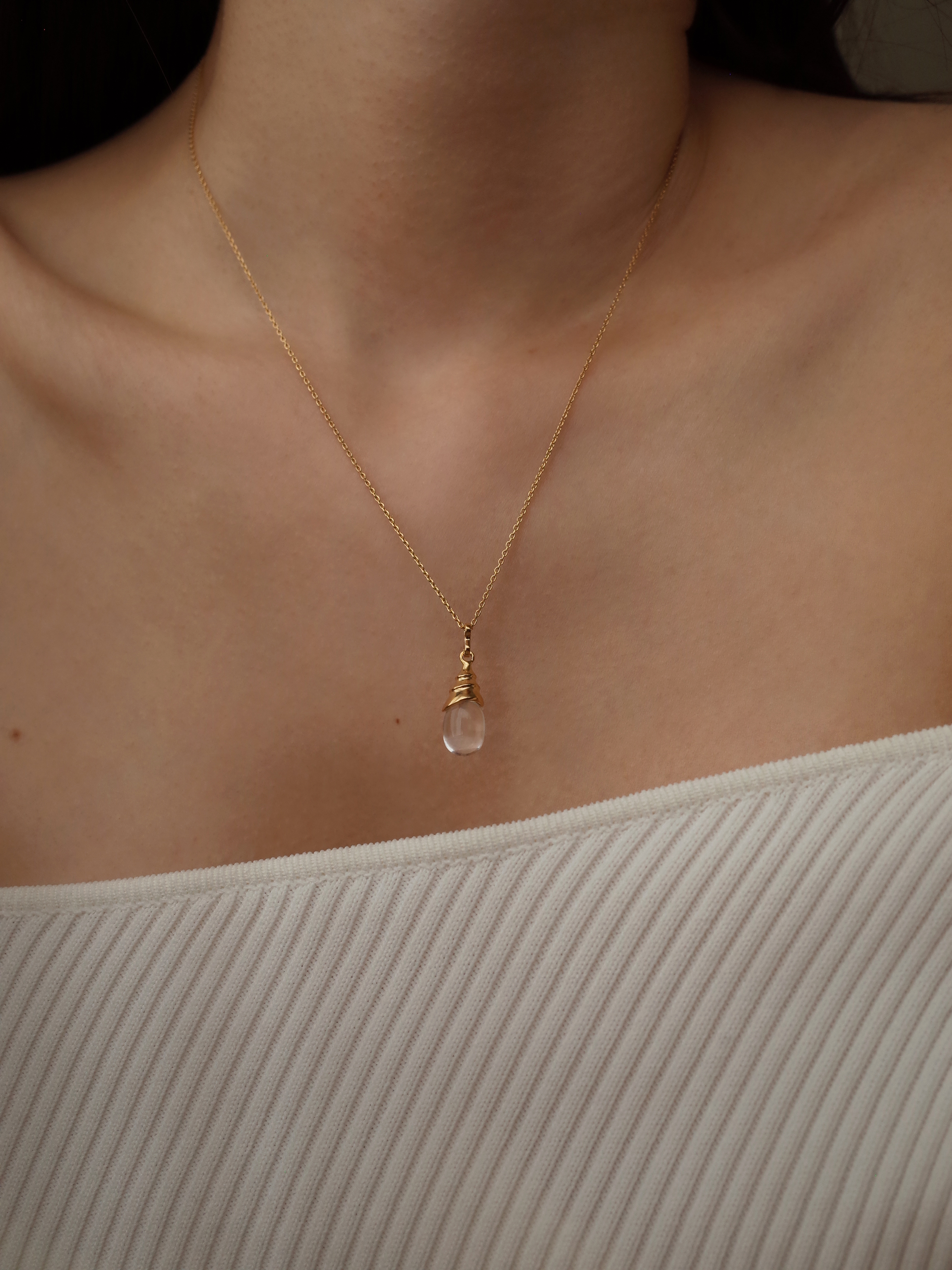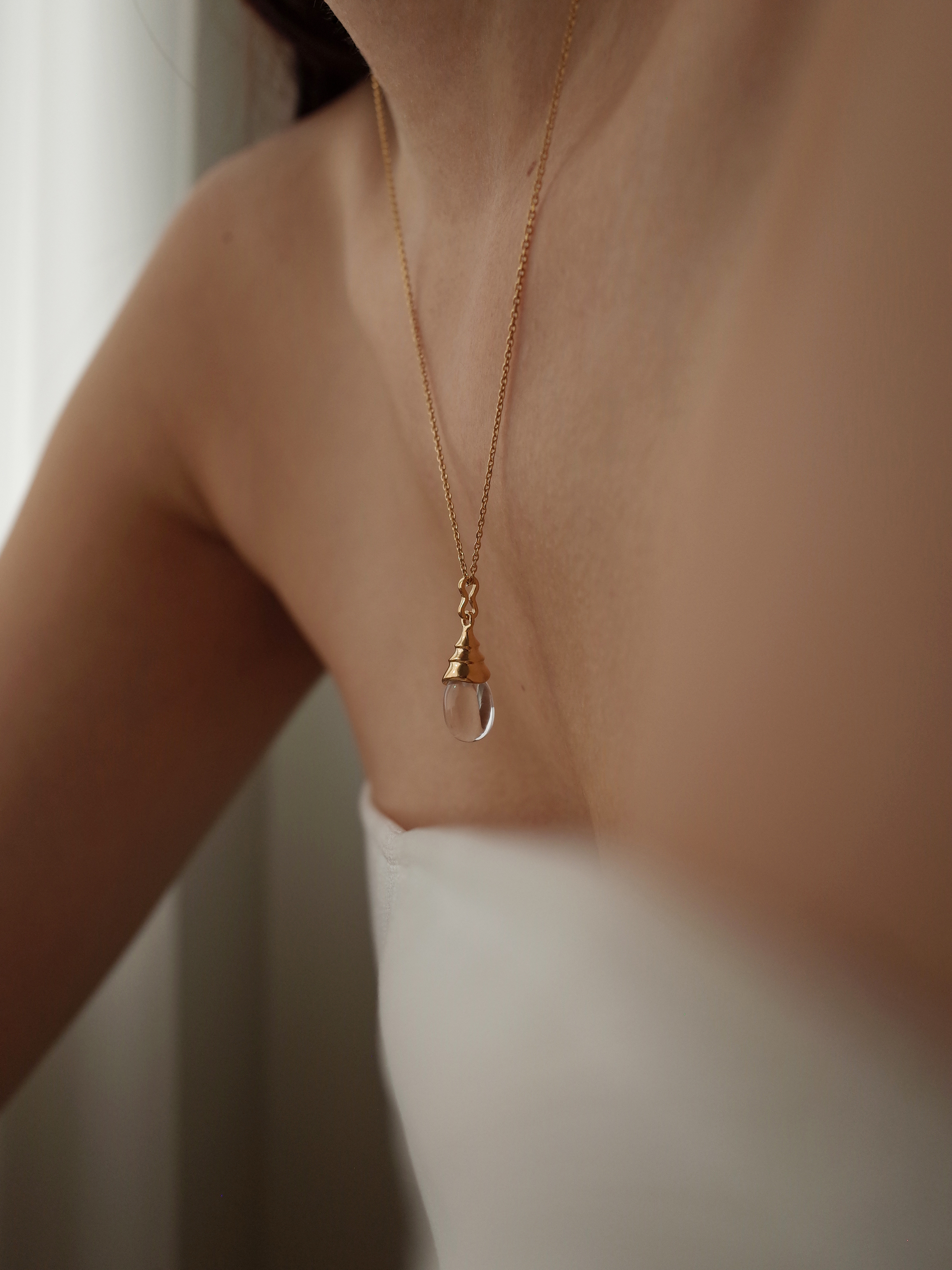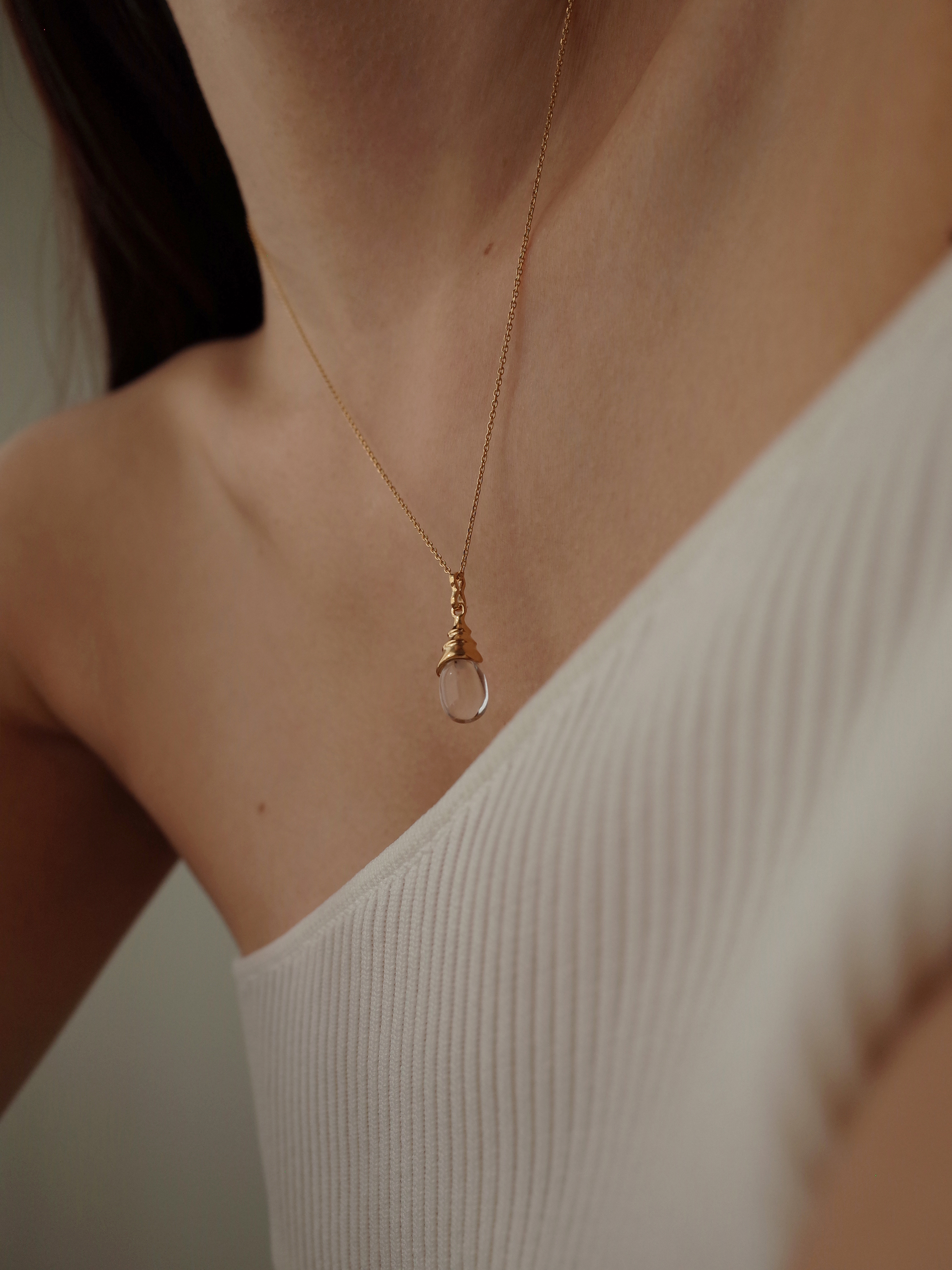 오랜 세월의 흔적이 담긴 팔레르모의 건축 양식에서 영감을 받아 제작한 팬던트 네크리스입니다. 전체적인 흐름이 자연스레 연결되는 곡선 쉐입 디자인으로 체인이 통과되는 유닛에 포인트를 주어 옆면에서도 아름다운 외형을 자랑합니다. 클리어한 백수정과 연기가 자욱한 듯 반투명한 연수정 두 가지 원석으로 준비되었습니다.