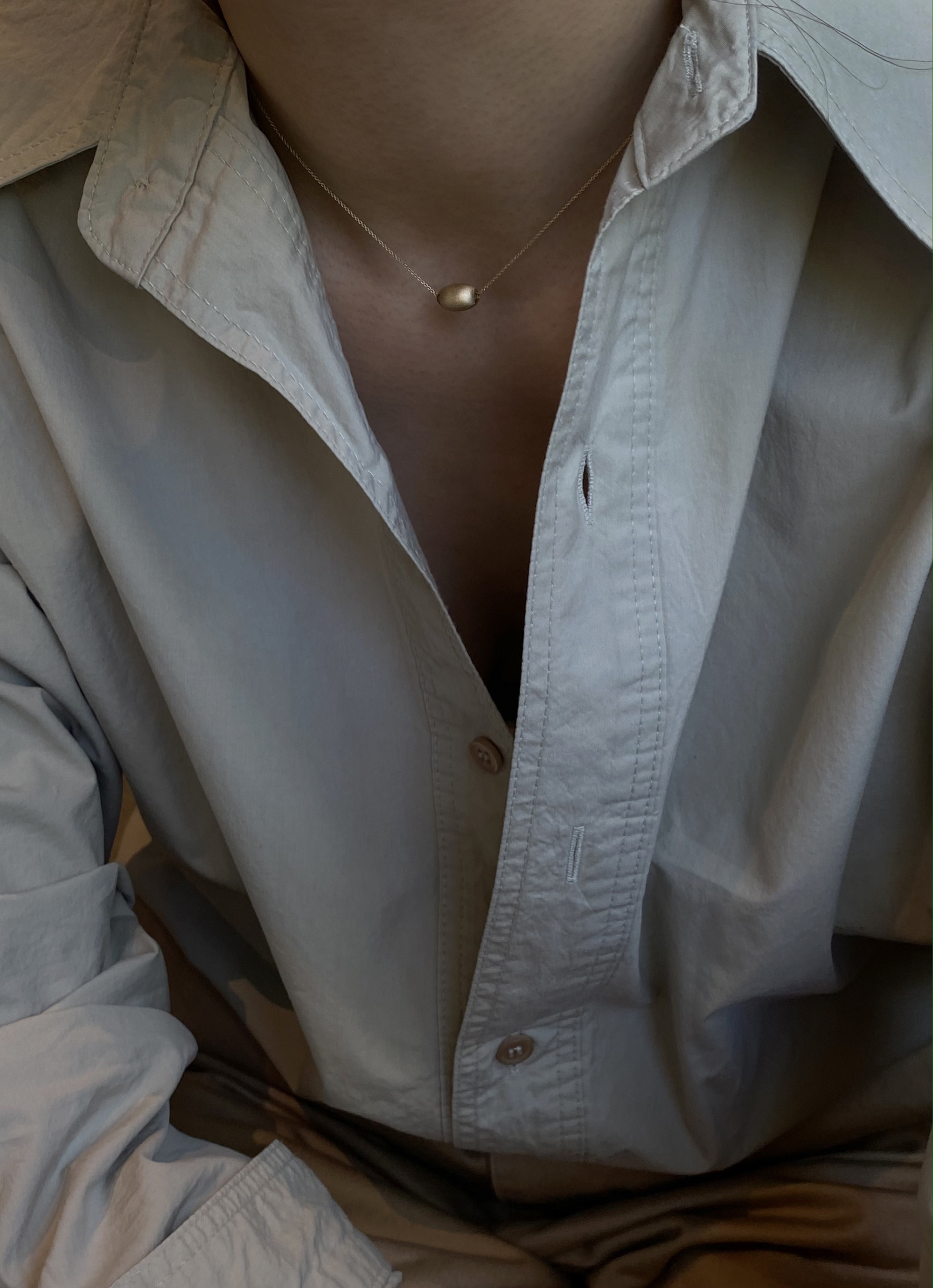 타원형 볼이 쇄골 중심에 떠있는 듯한 형상의 솔레네 네크리스