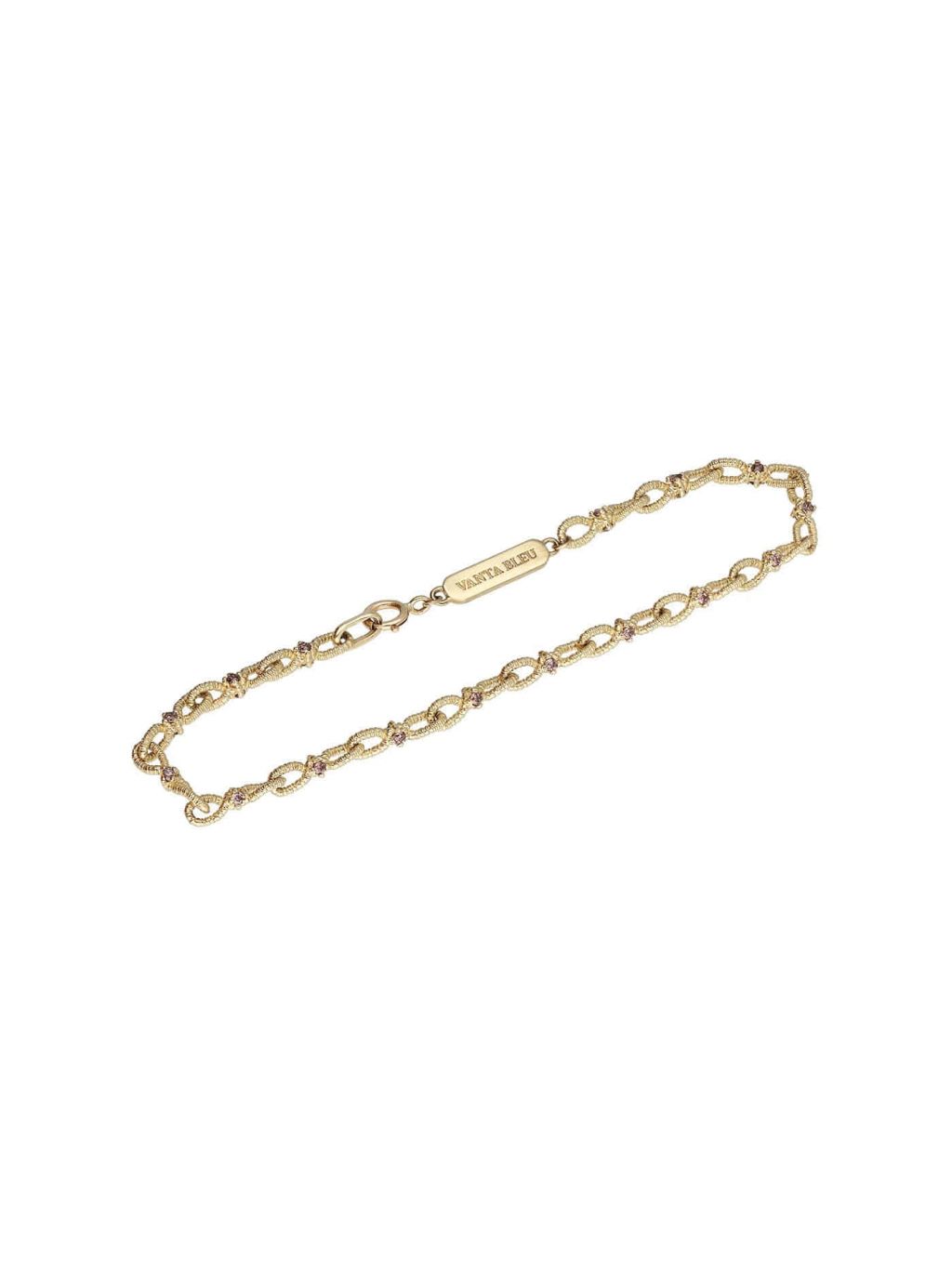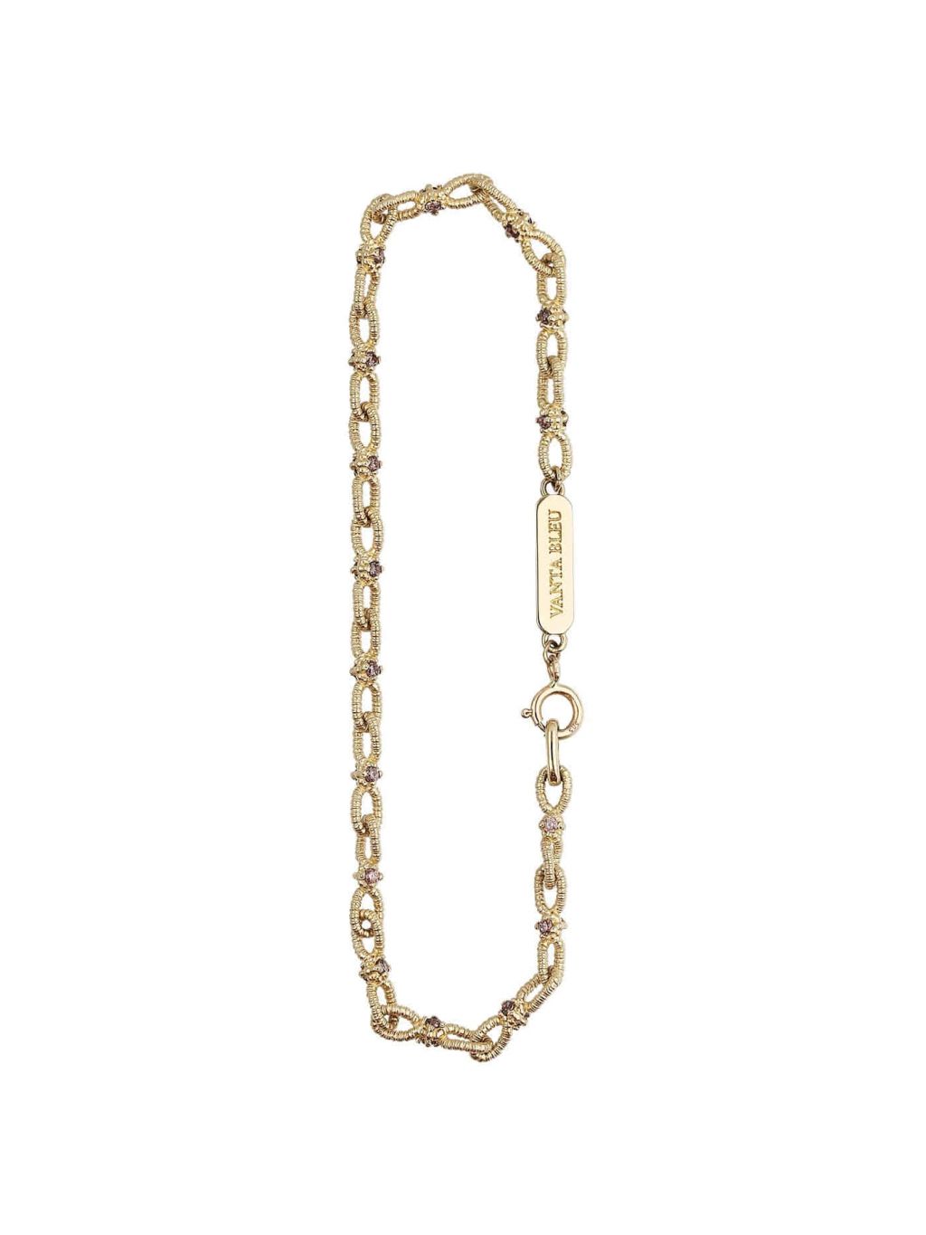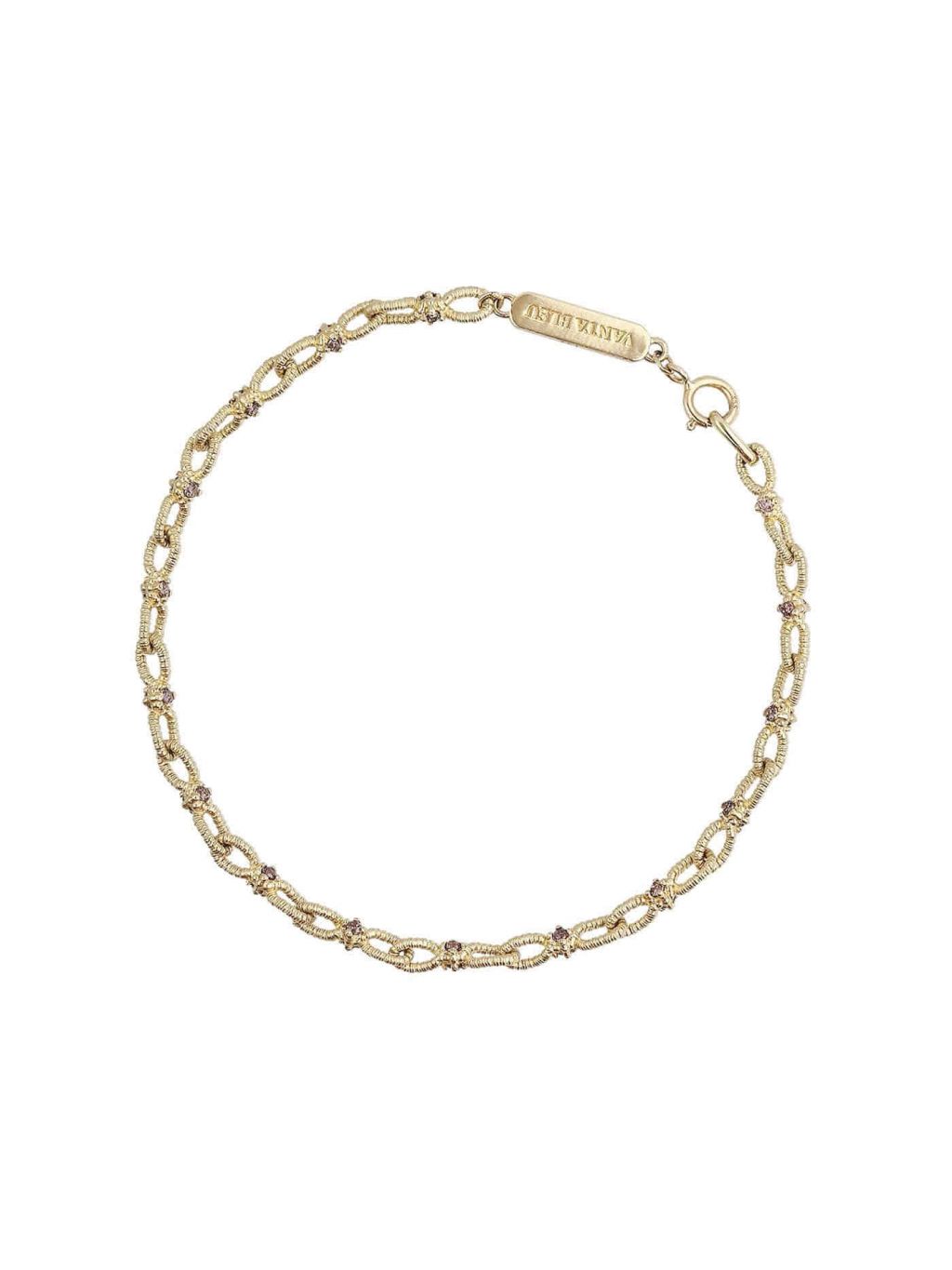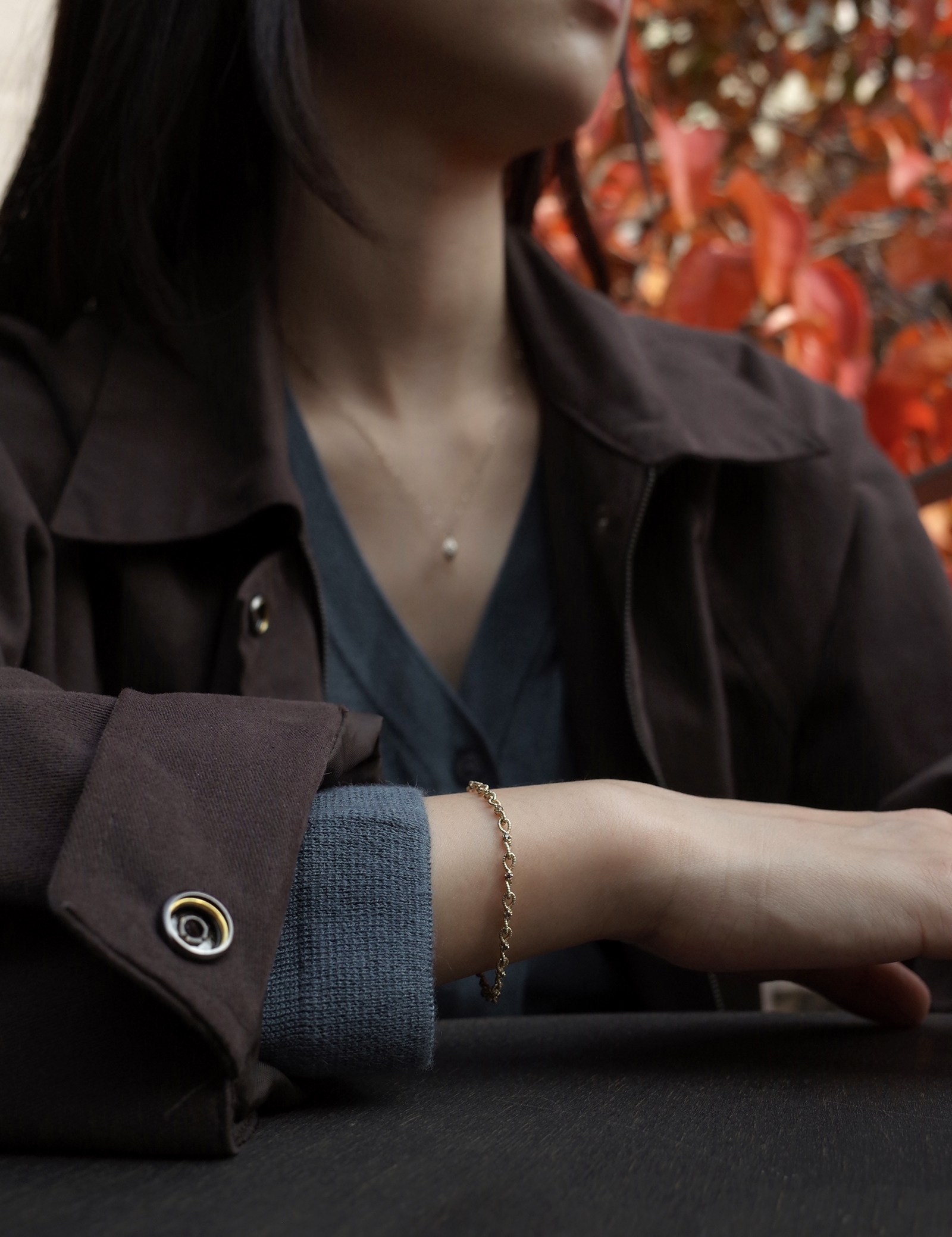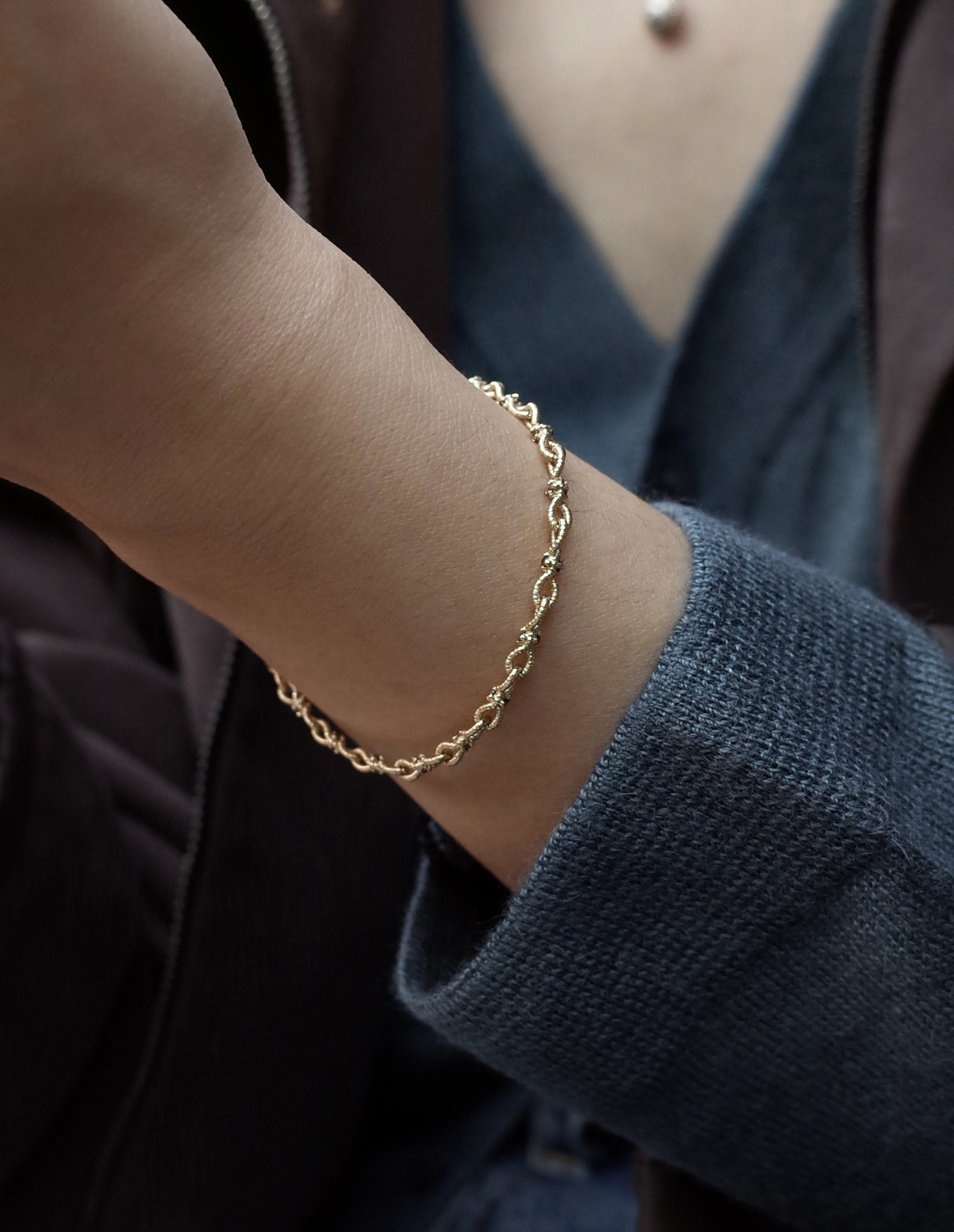 표면에 얇은 선이 섬세하게 조각된 꼬임 유닛에 브라운 스톤이 양방향으로 세팅된 체인 브라스렛입니다. 두께감이 있으면서 유니크한 디자인으로 존재감있게 연출되는 제품입니다.