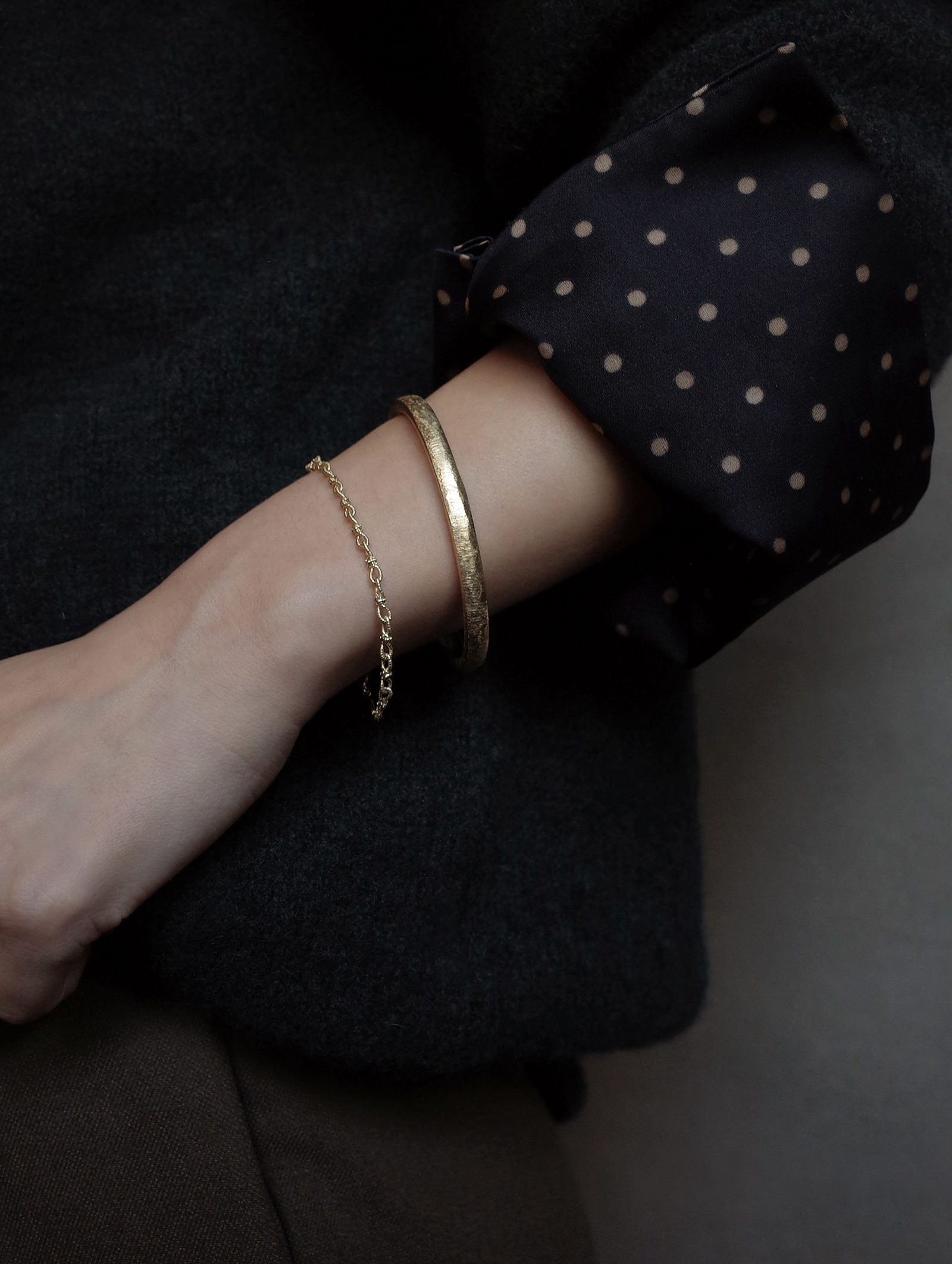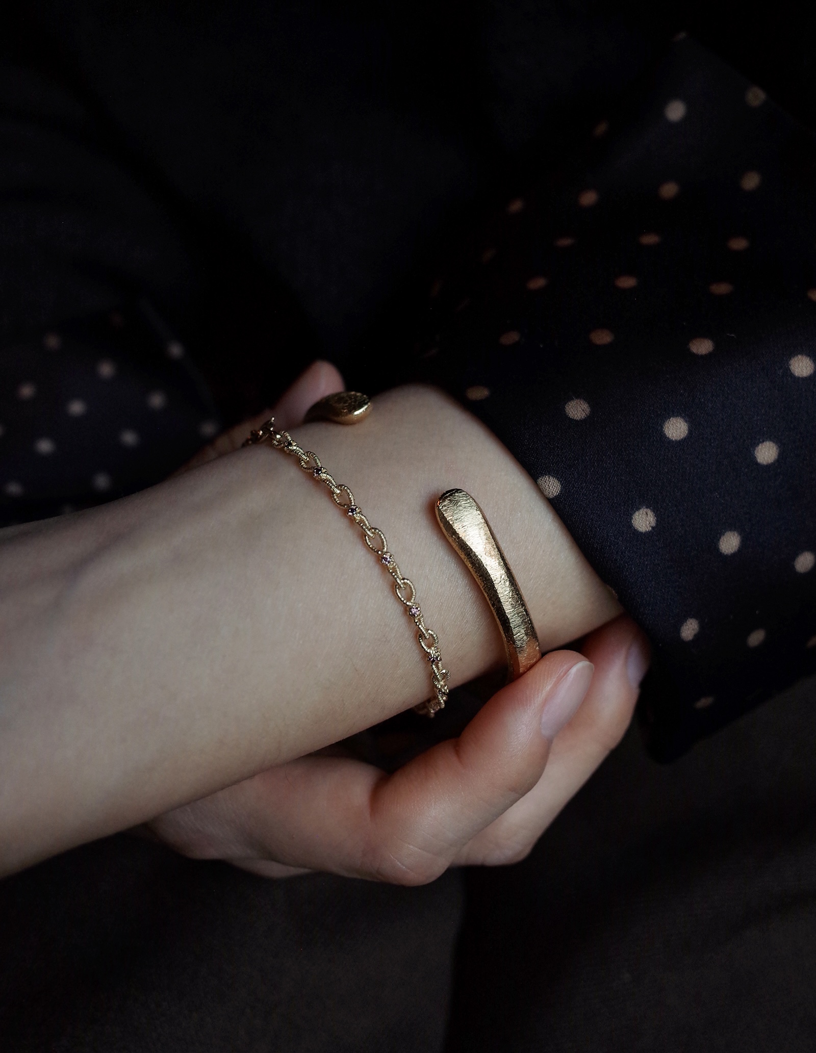 러프하면서도 앤틱한 무광 질감에 브라운 스톤이 세팅된 팔로마 브라스렛