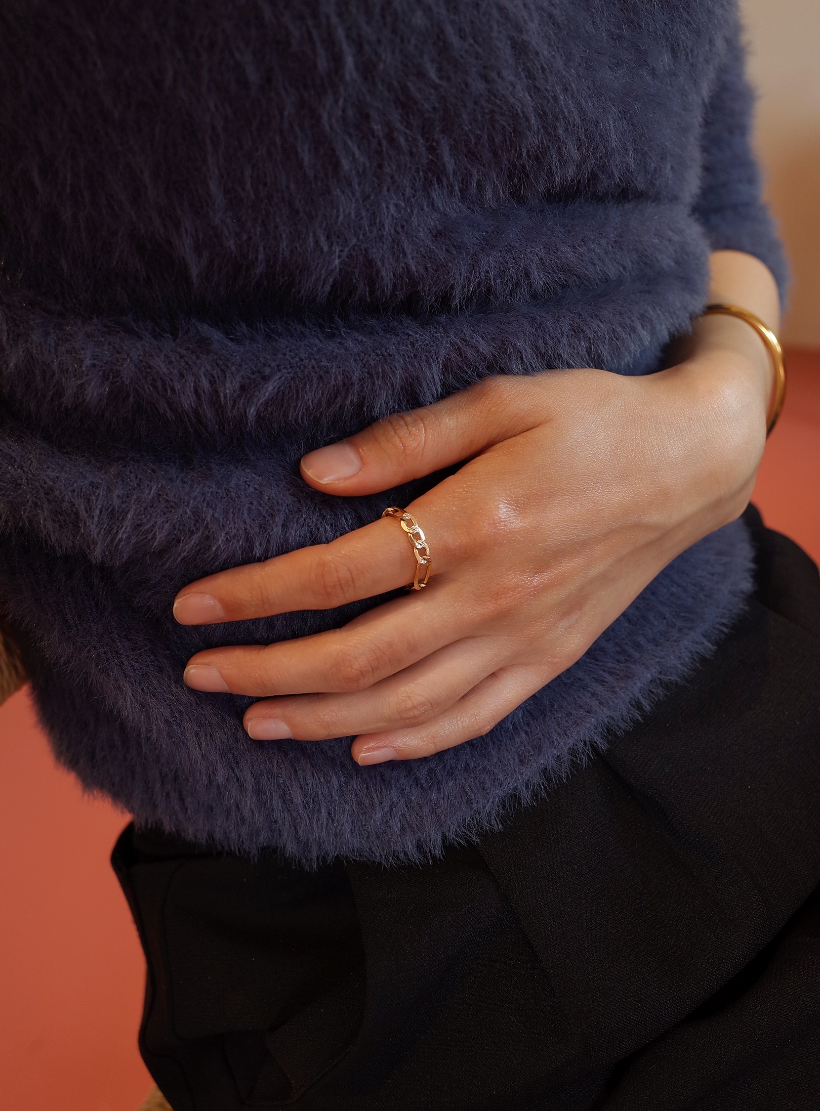 골드 유닛 양면에 이태리 특수 조각 기법을 넣은 뒤 화이트 골드를 입혀 입체적인 느낌을 부각시킨 고급스러운 광채의 체인 링