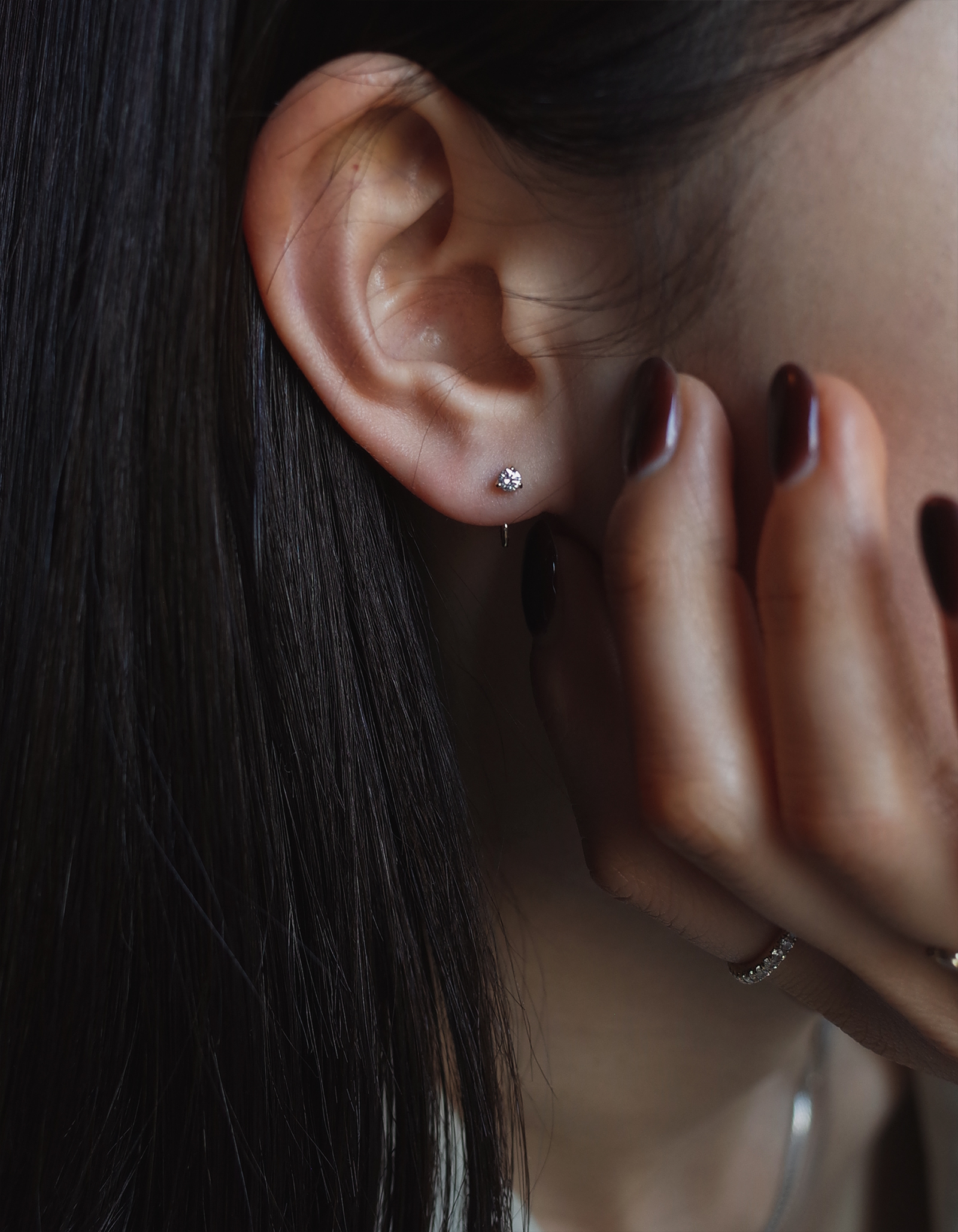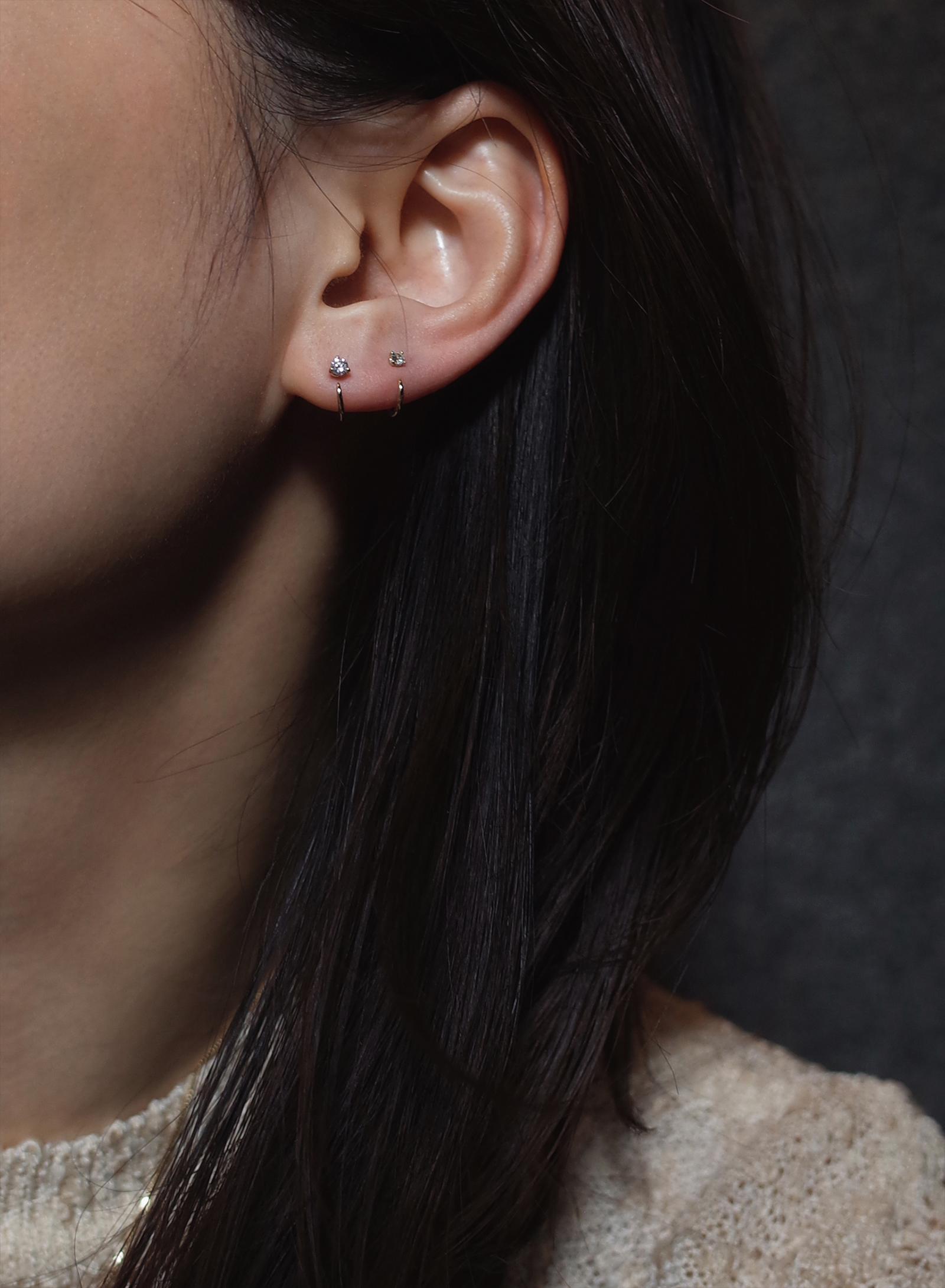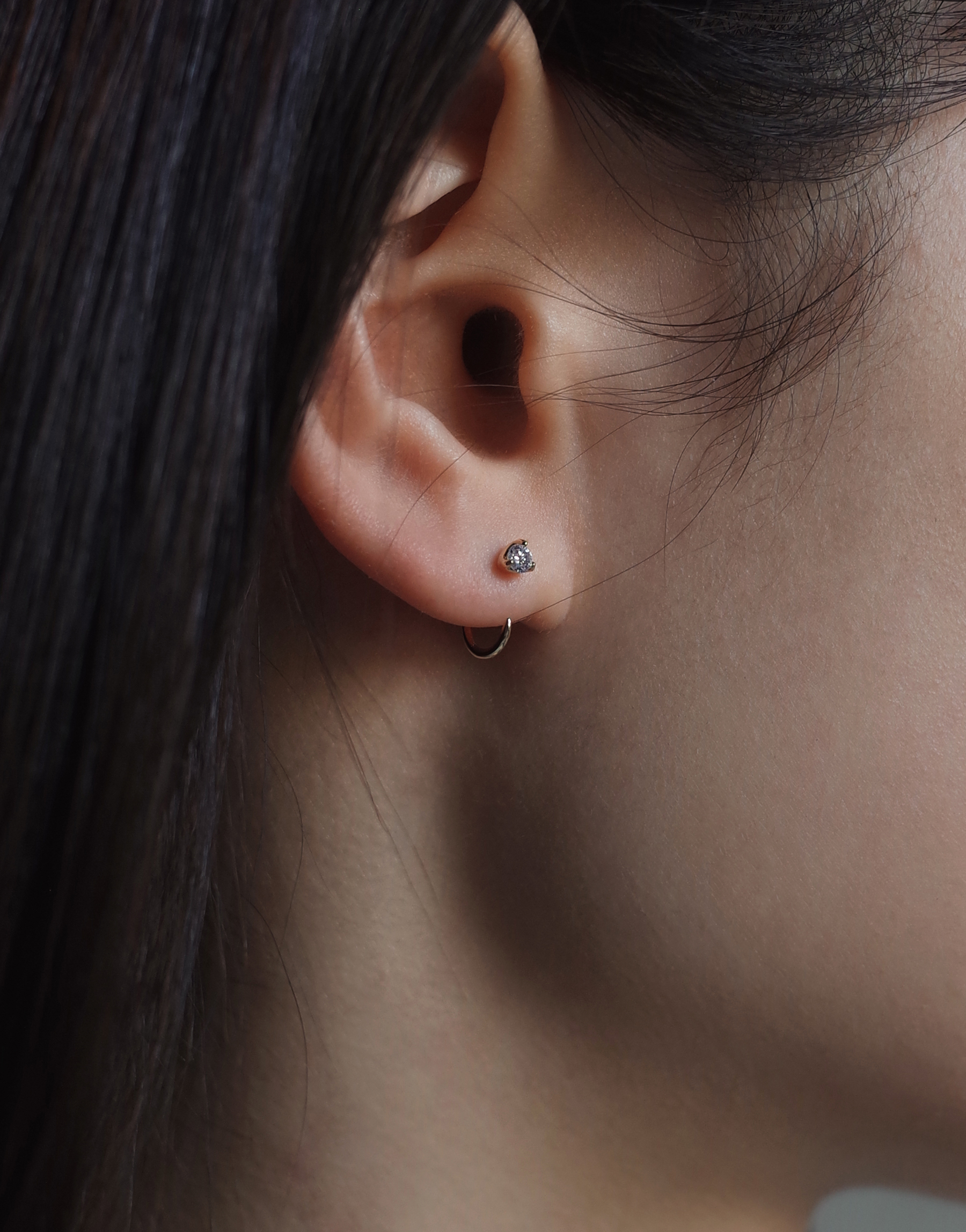 * 별도의 마감없이 곡선의 갈고리 바를 부드럽게 돌린 후 귓볼에 맞게 살짝 힘을 주어 고정하는 방식입니다. 일자 침은 평균 길이로 흔들림없이 핏하게 귓볼을 감싸며 안정감있게 안착됩니다.