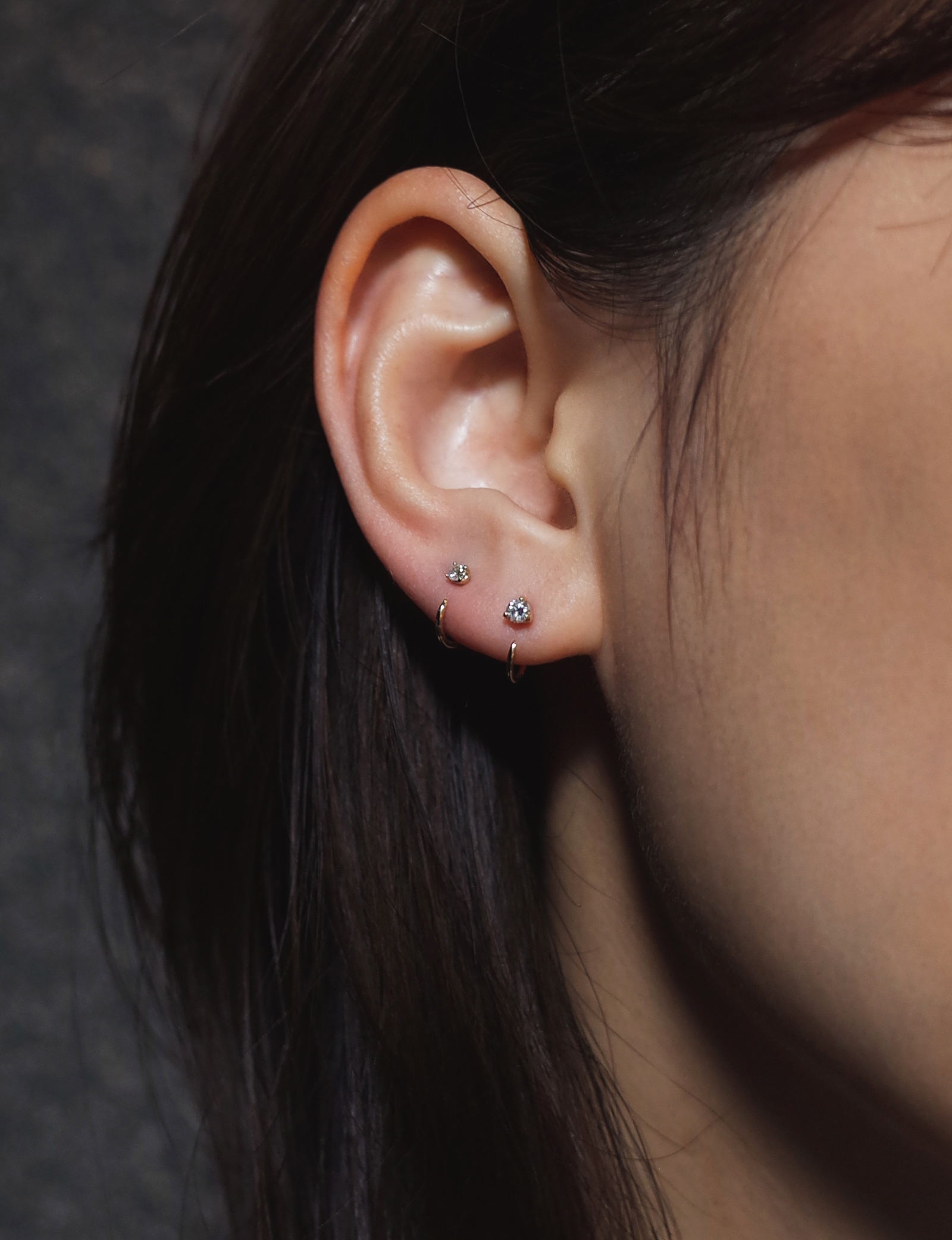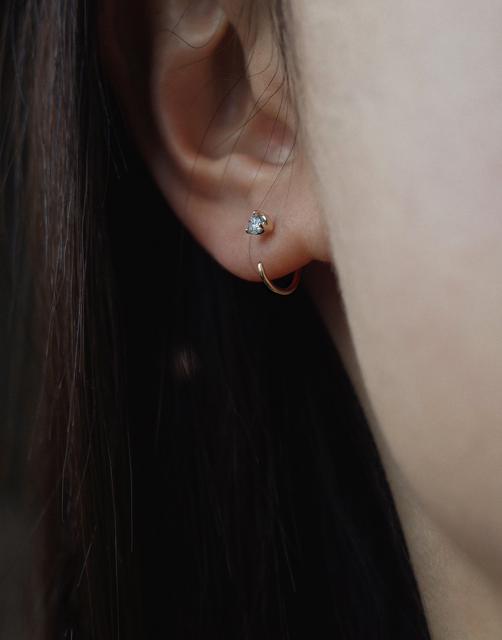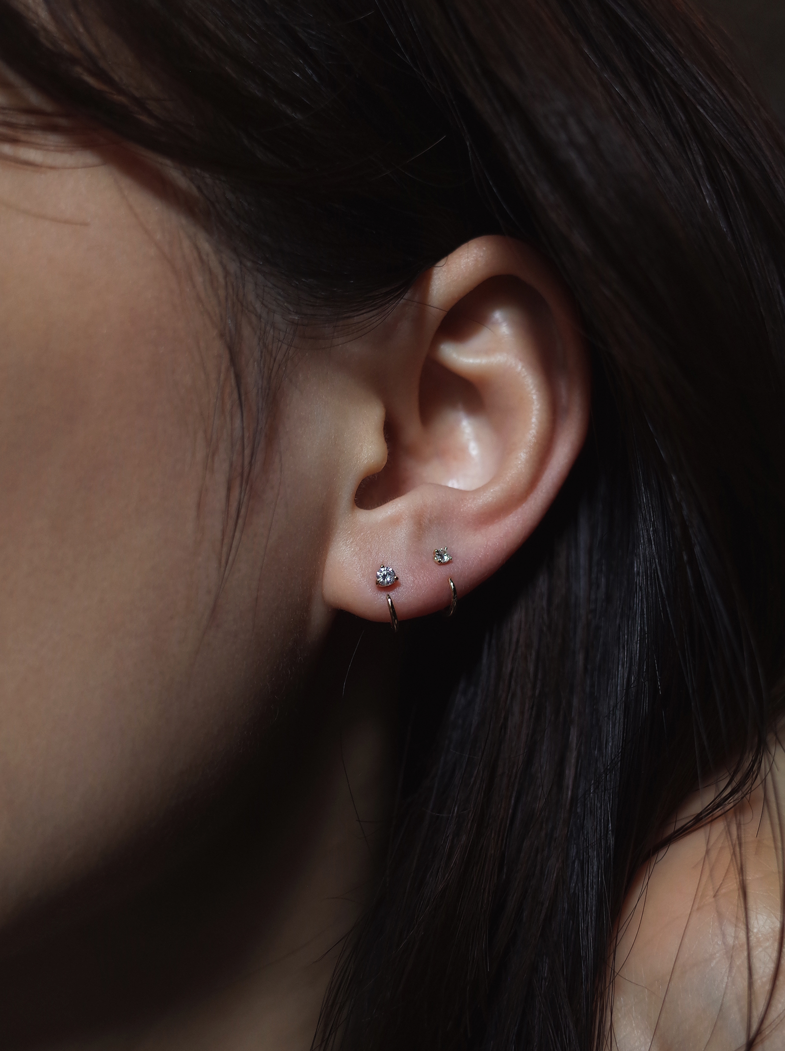 * 별도의 마감없이 곡선의 갈고리 바를 부드럽게 돌린 후 귓볼에 맞게 살짝 힘을 주어 고정하는 방식입니다. 일자 침은 평균 길이로 흔들림없이 핏하게 귓볼을 감싸며 안정감있게 안착됩니다.
