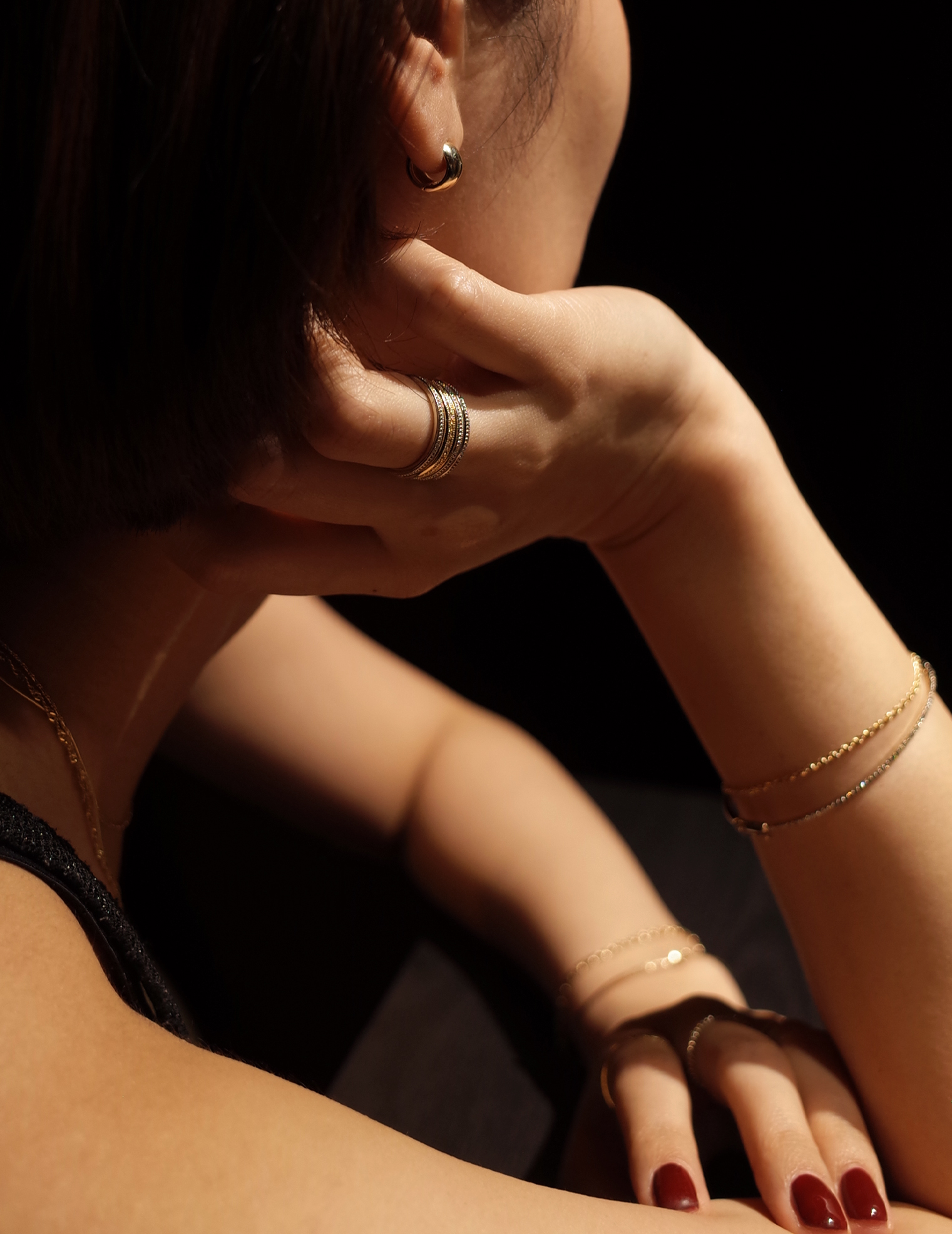 론드 후프 이어링은 와이드한 너비와 아로진 옆면으로 여성스러움과 동시에 모던함이 느껴지는 제품입니다. 적당한 무게감으로 착용 시 고급스러움이 느껴지며 심플한 외형으로 데일리웨어로 착용하기 좋습니다.
