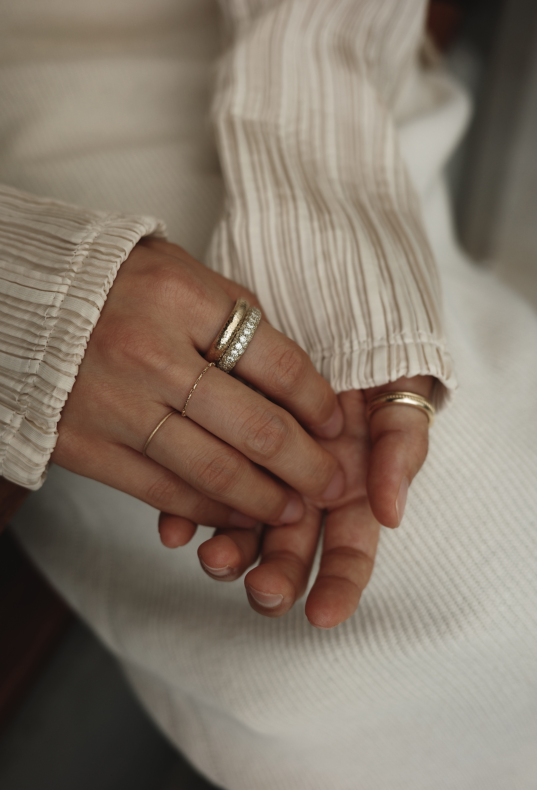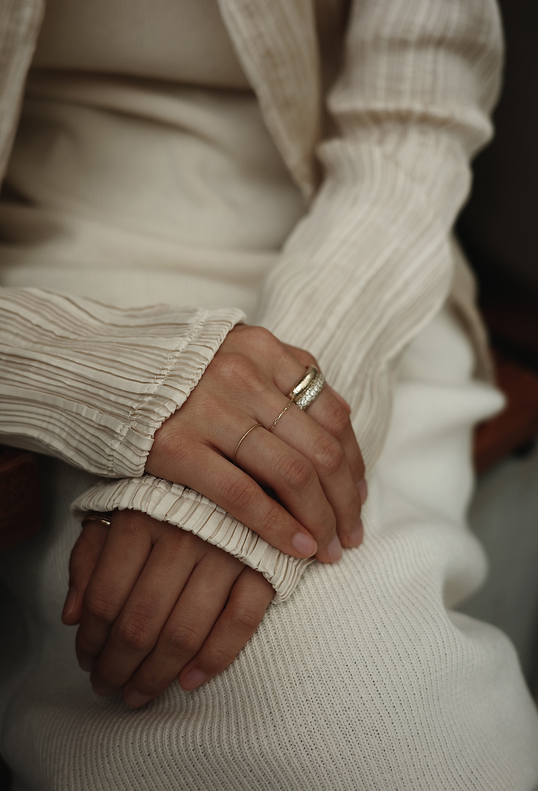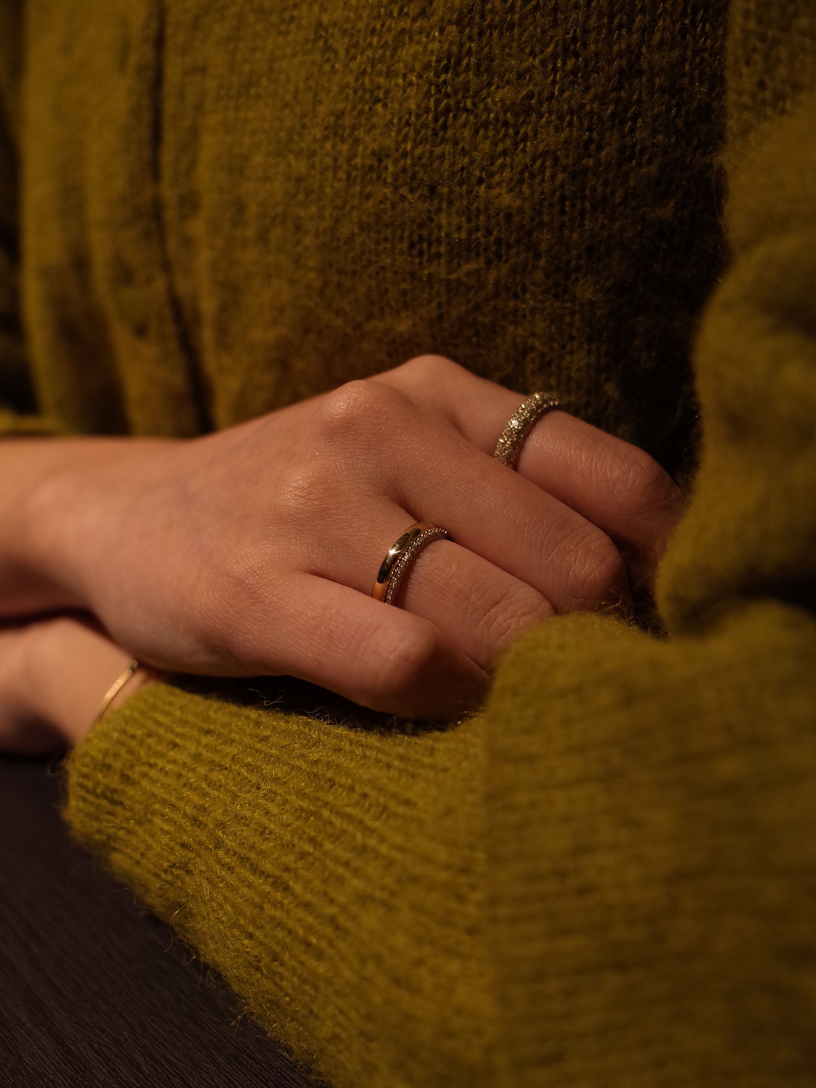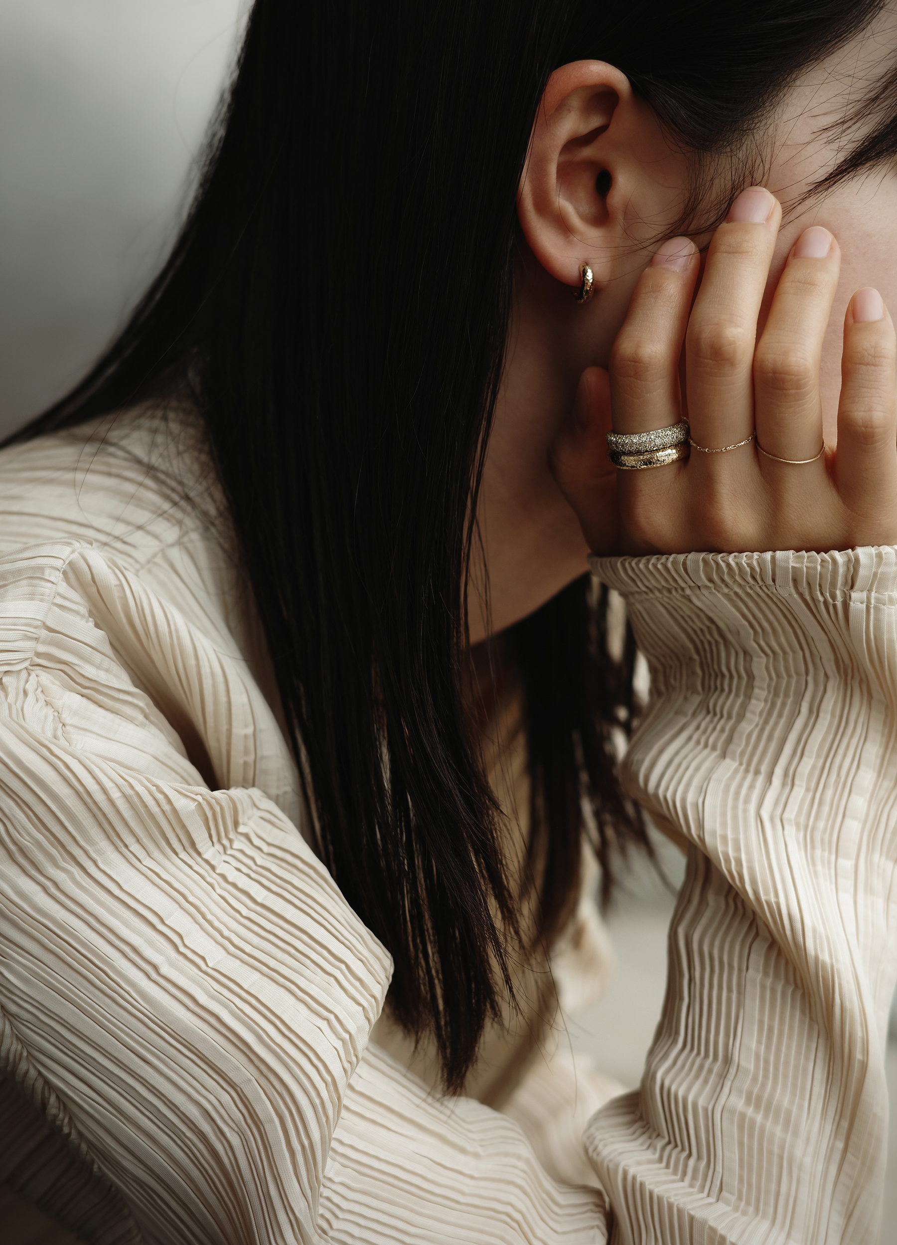 특정 음을 멈추고 순간의 여운을 음미하도록 허락하는 클래식 음악 기호 ‘Fermata’ 세련된 곡선 쉐입과 균형 잡힌 구조의 페르마타는 시대를 초월하는 아름다움으로 강렬한 존재감을 선사합니다. 샴페인 스톤이 정교하게 세팅된 풀 파베 디테일은 어느 각도에서나 부드러운 빛을 반사하며 단독 착용만으로도 독보적인 우아함을 드러냅니다.
