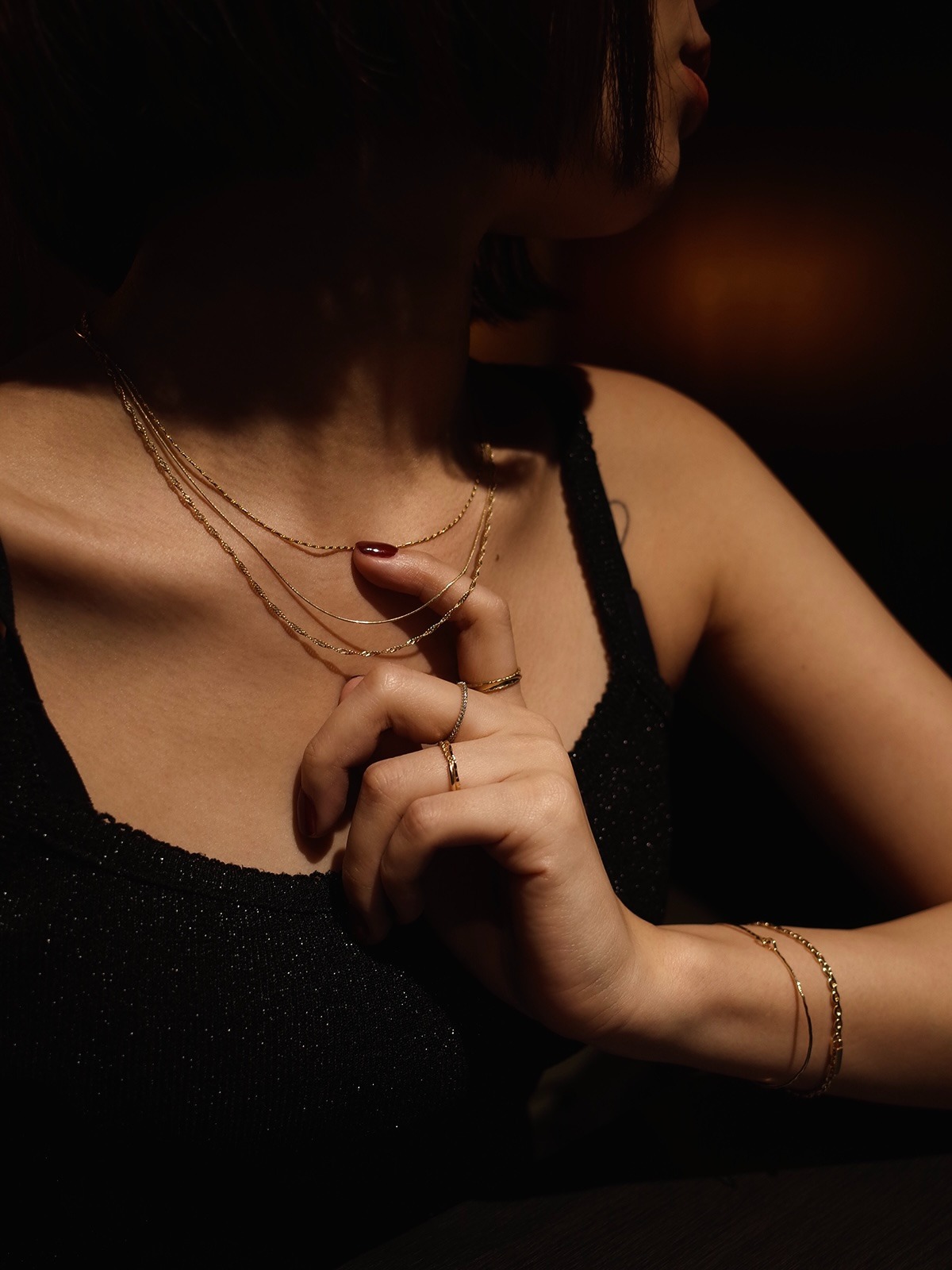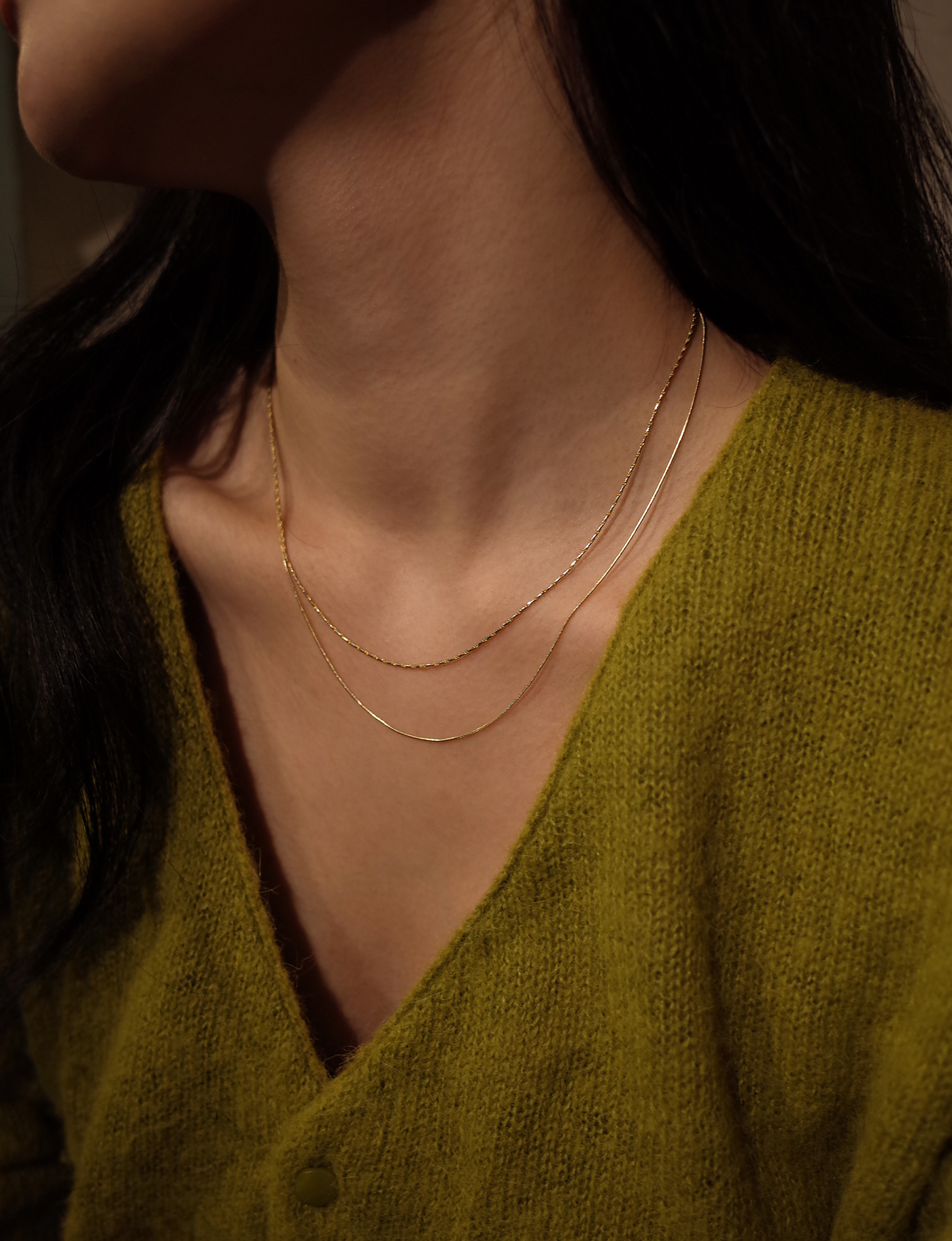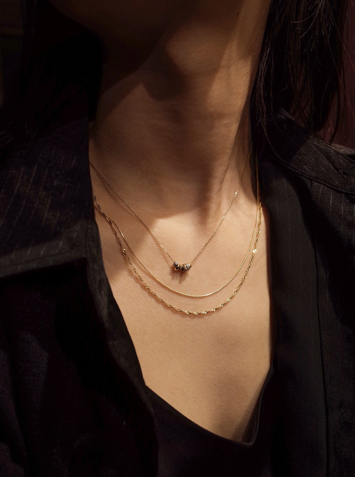 은은하게 빛나는 실키한 반무광 체인에 매끈한 유광 마감 장식의 조화가 돋보이는 Thin Thread는 간결하면서도 완성도 높은 마감으로 현대적인 감성이 느껴지는 제품입니다.