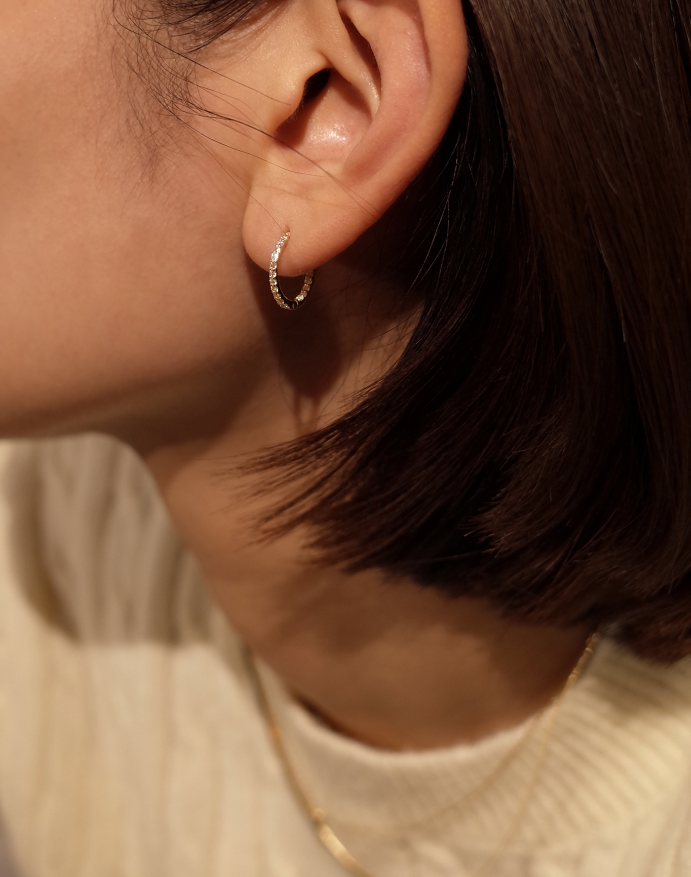 앞면의 내외부에 스톤이 전체적으로 세팅된 후프 이어링