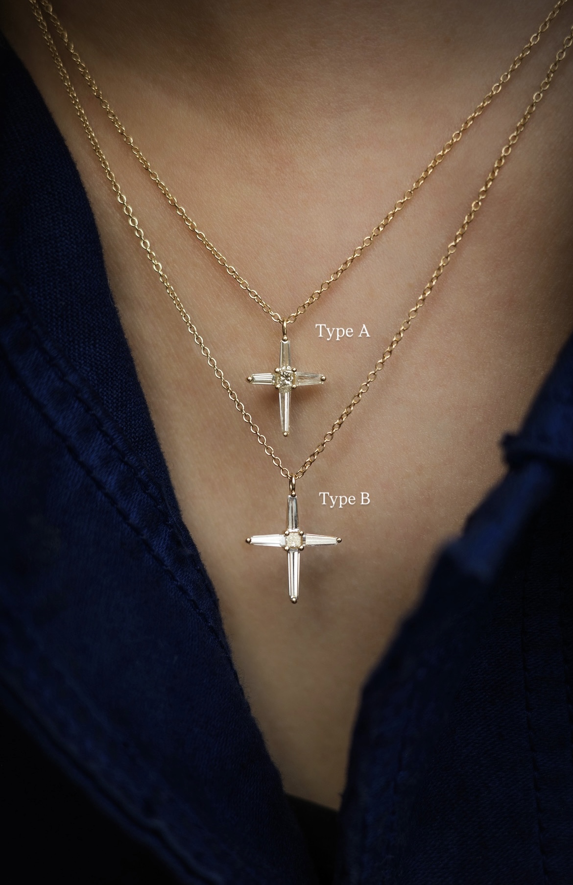 Type B. 화이트 다이아몬드로 투명하고 순수한 빛을 극대화한 십자가 팬던트