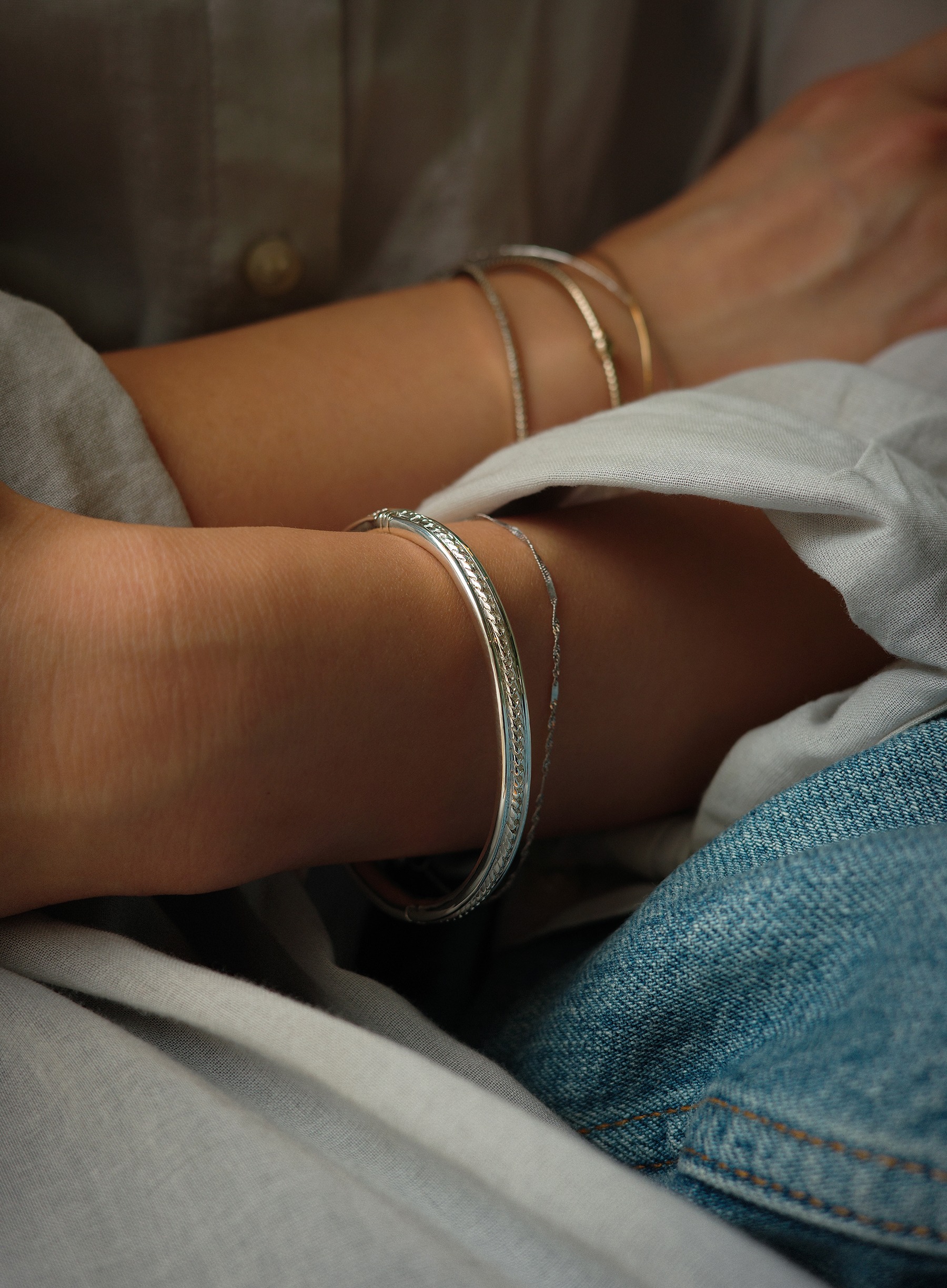 절제된 조형미와 구조적 힘이 공존하는 더 브레이드 II 뱅글