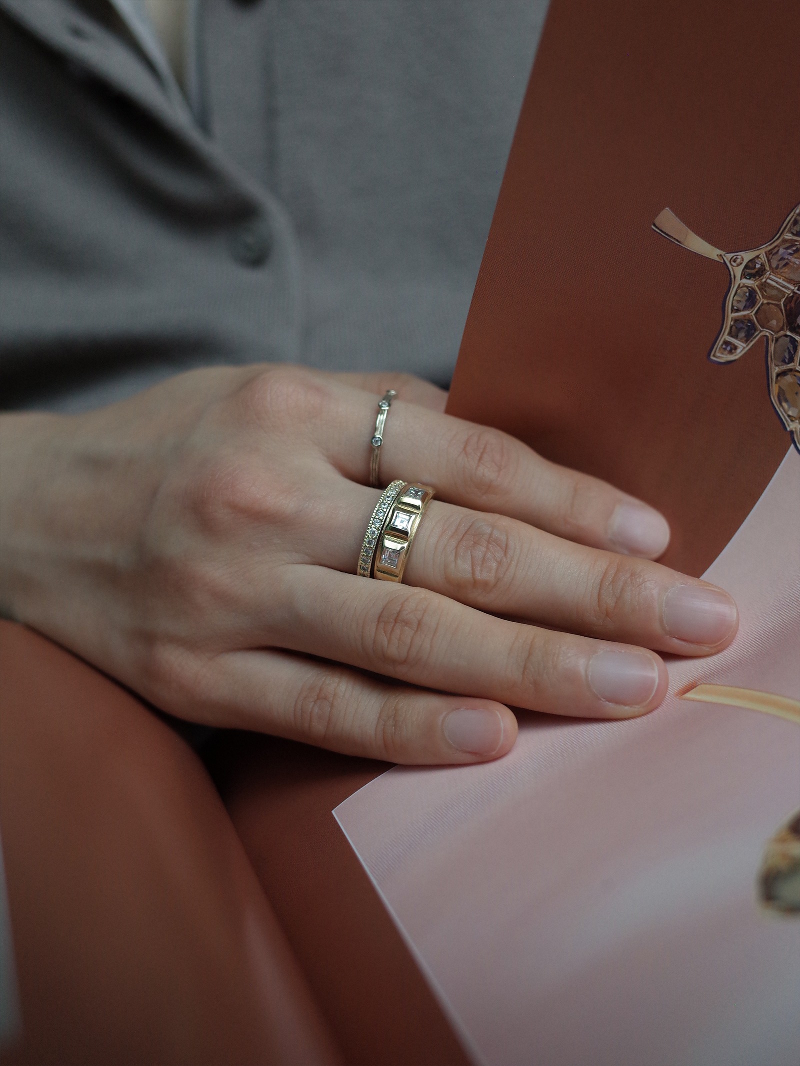 고대 건축물을 현대적으로 재해석하여 디자인한 센슈얼 감성의 프렌치 모던 링