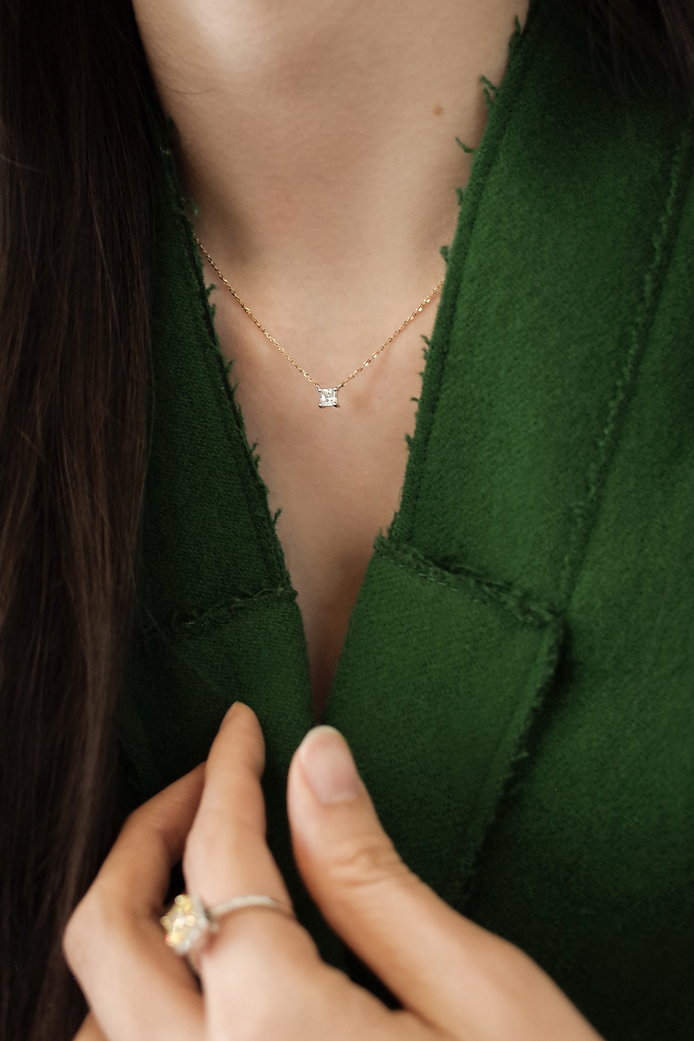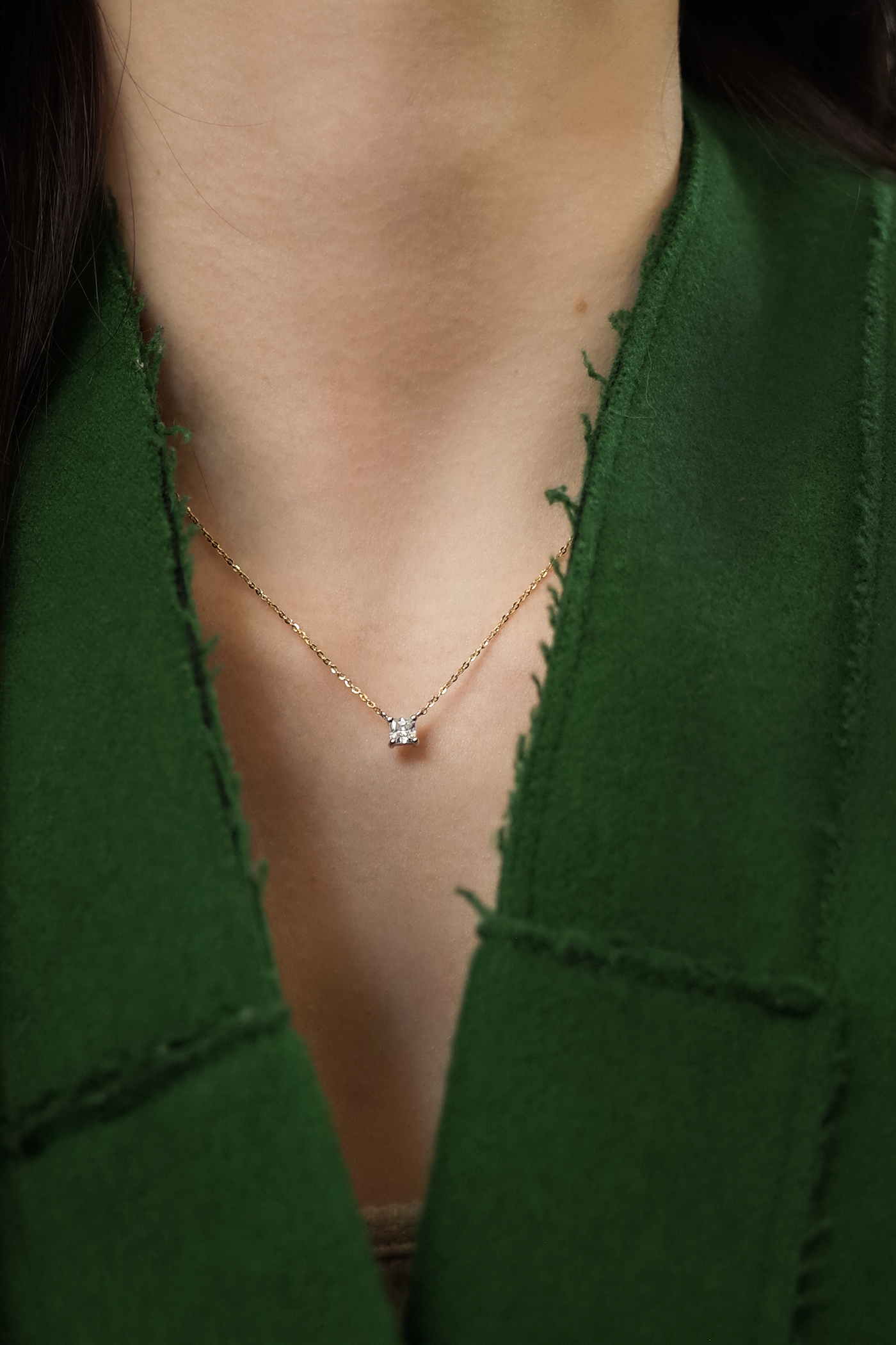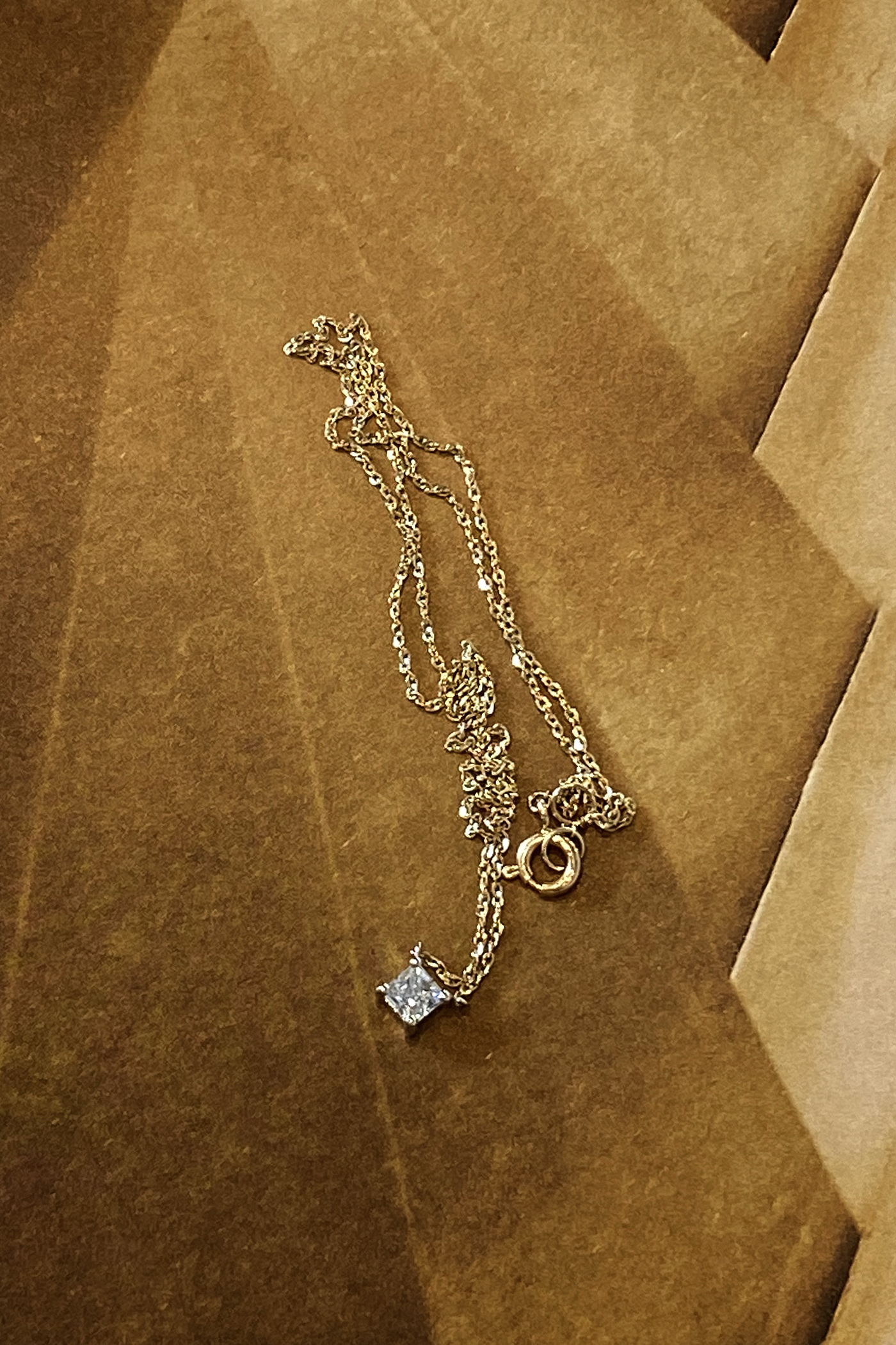 반짝임이 우수한 커브 체인에 스퀘어 랩 다이아몬드가 세팅된 클레어 네크리스