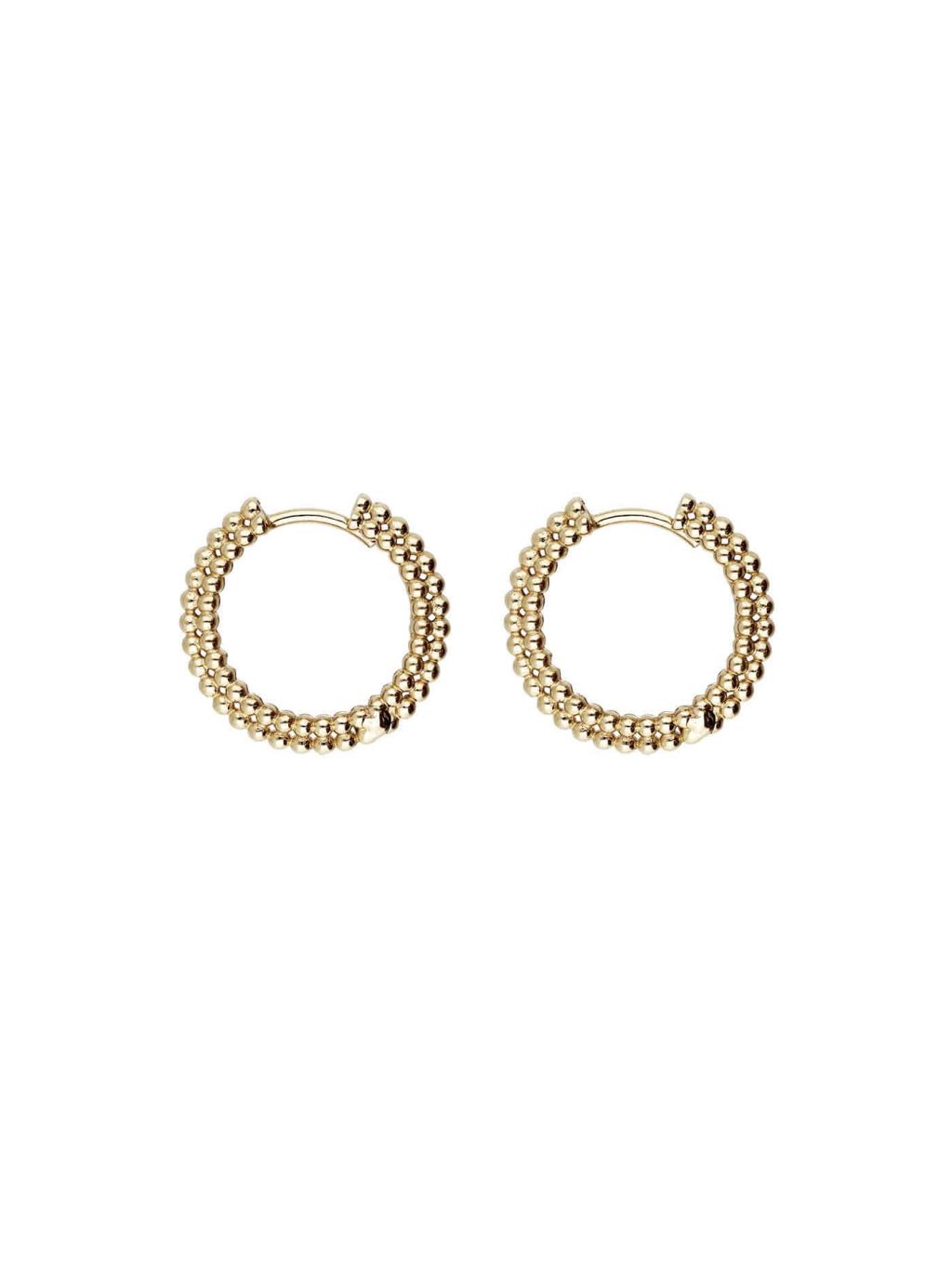 입체적인 형태의 도트 무늬가 패턴처럼 반복되는 후프 이어링