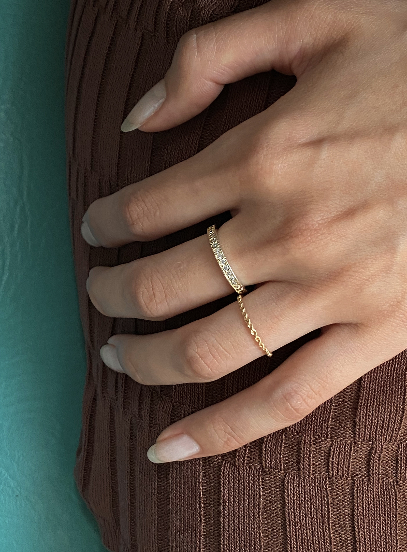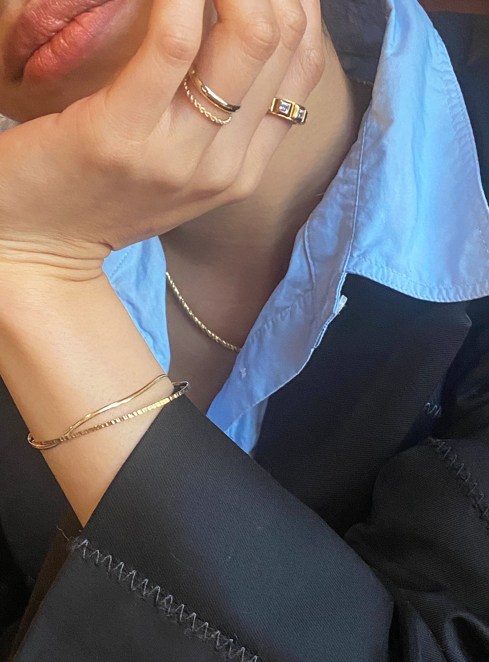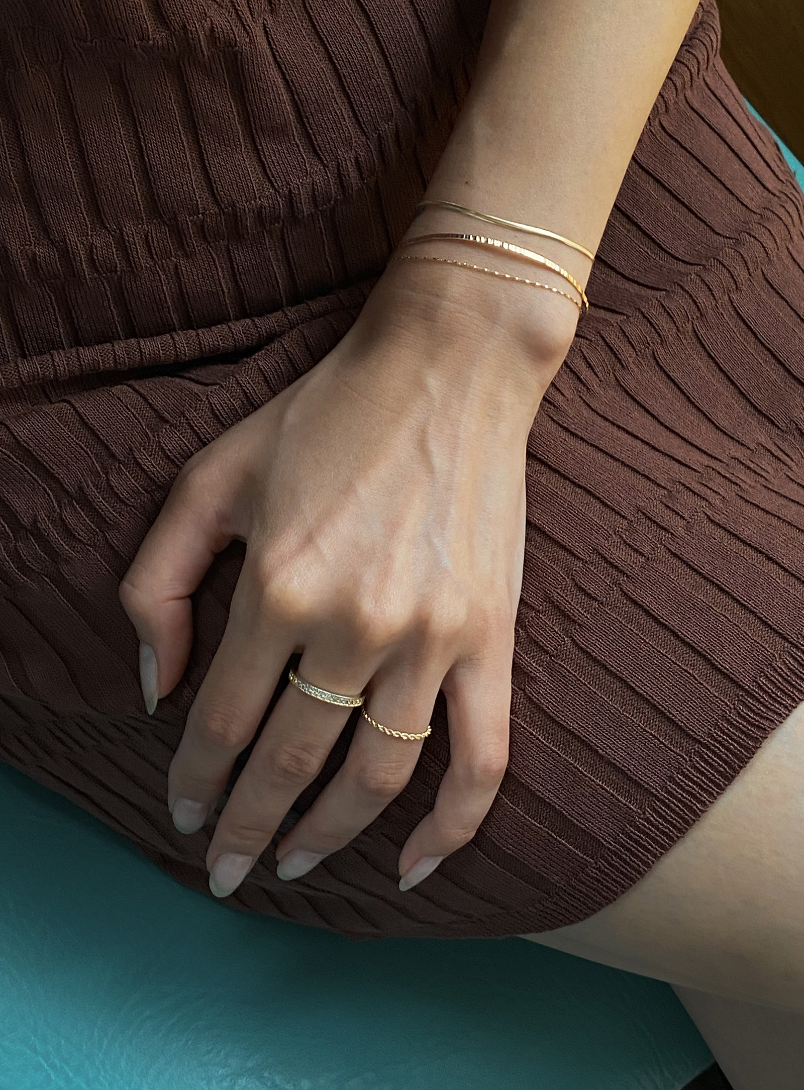 꼬임 디테일이 멋스러운 중성적인 무드의 이태리 수입 체인 링입니다. 은은하면서 차분한 빛이 감도는 체인으로 앤틱한 무드를 좋아하시는 분들께 추천드립니다.