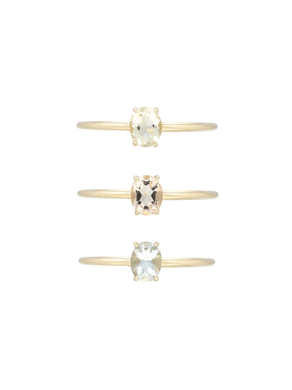 심플하고 모던한 디자인으로 제작된 프랭탕 링 시리즈입니다. 투명하고 깨끗한 오벌 형태의 원석이 세팅된 싱글 프롱 링으로 여성스러움을 자아내면서도 캐주얼하게 착용하기 좋은 데일리 웨어 제품입니다. 모거나이트, 아콰마린, 레몬쿼츠 세가지 원석 중 선택 가능합니다.