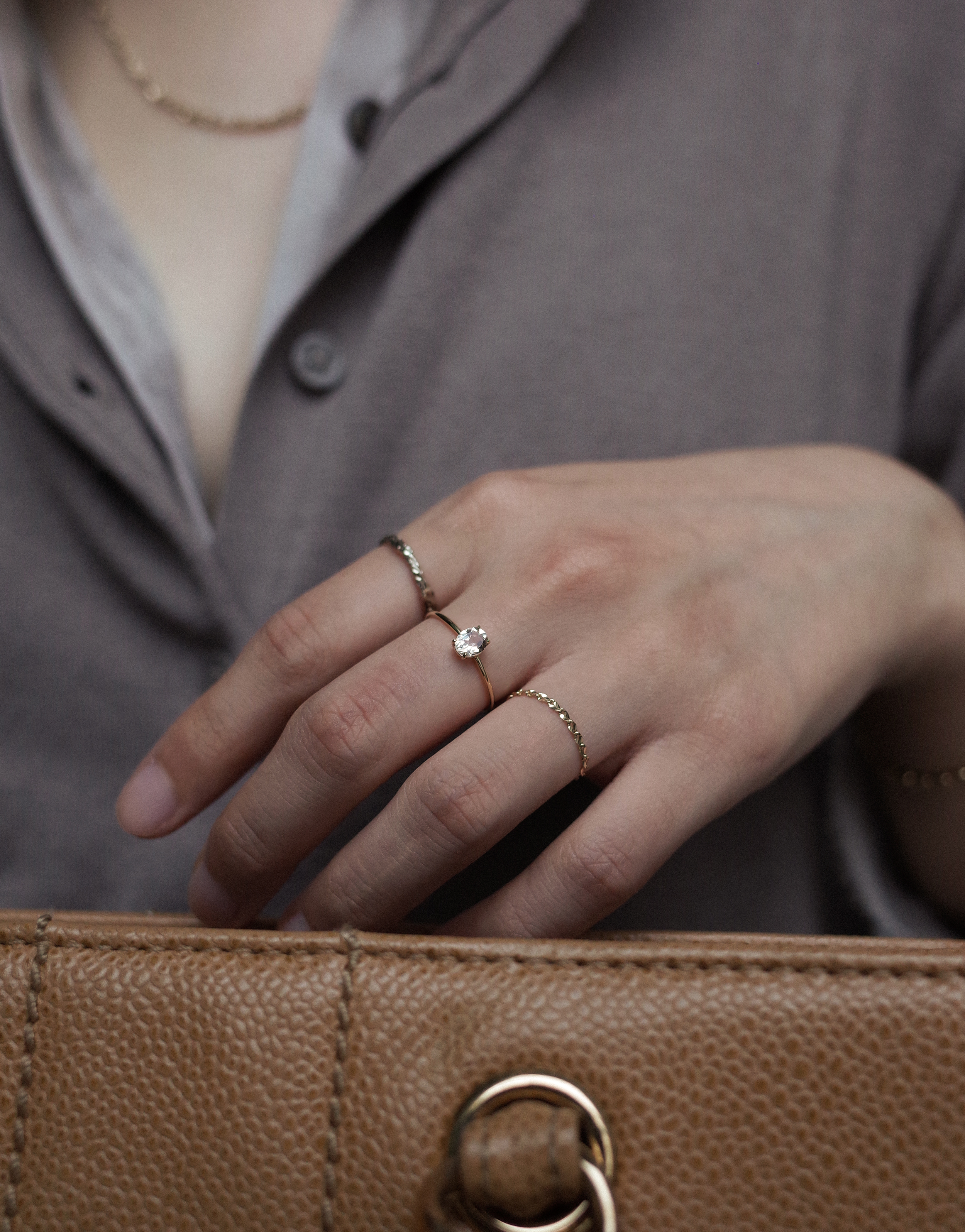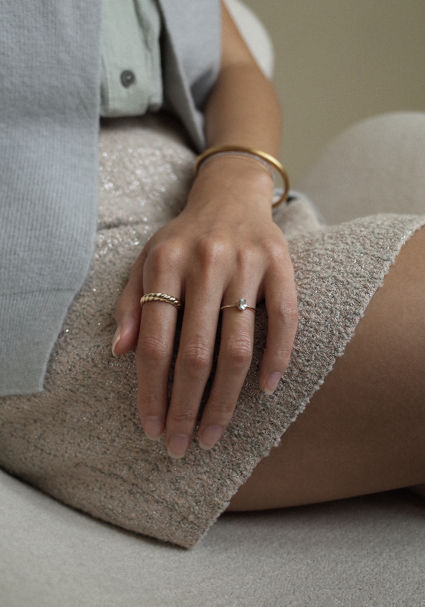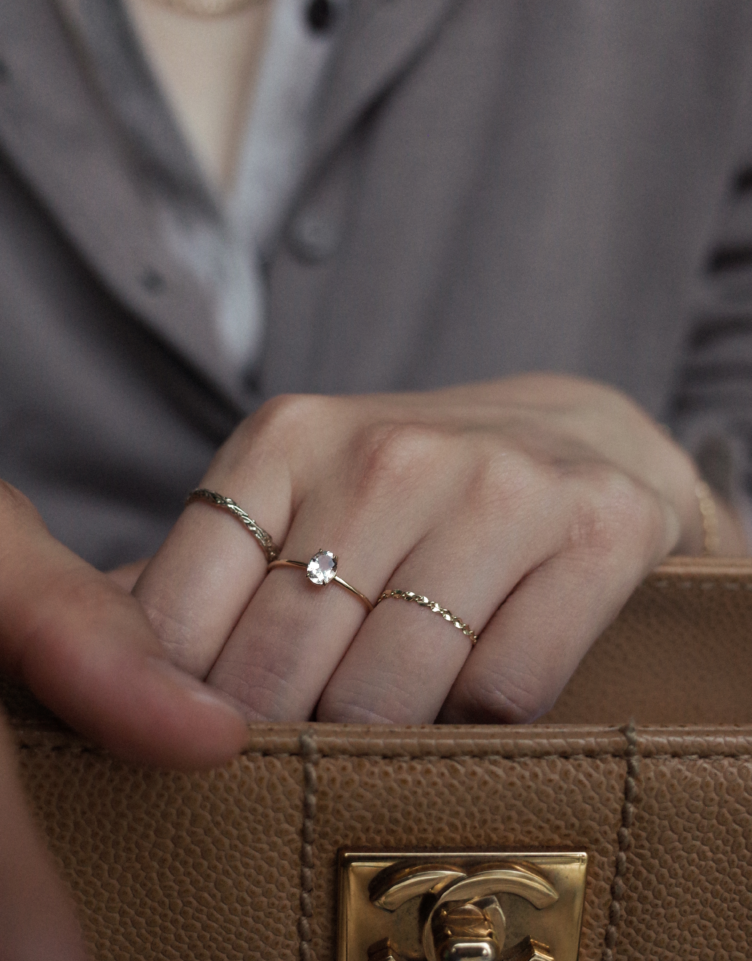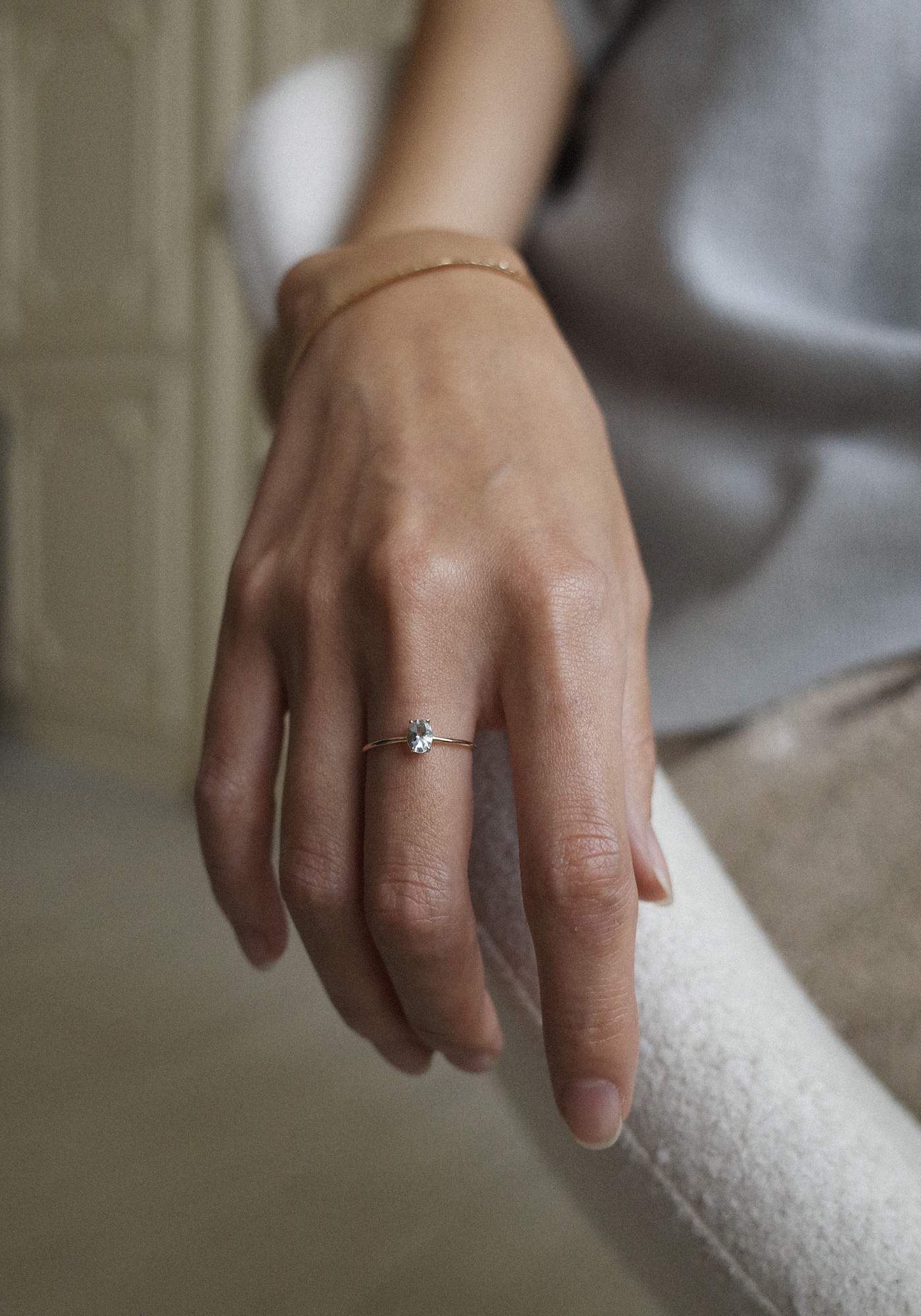 간결한 우대에 투명하고 깨끗한 톤의 오벌 원석이 돋보이는 프랭탕 링