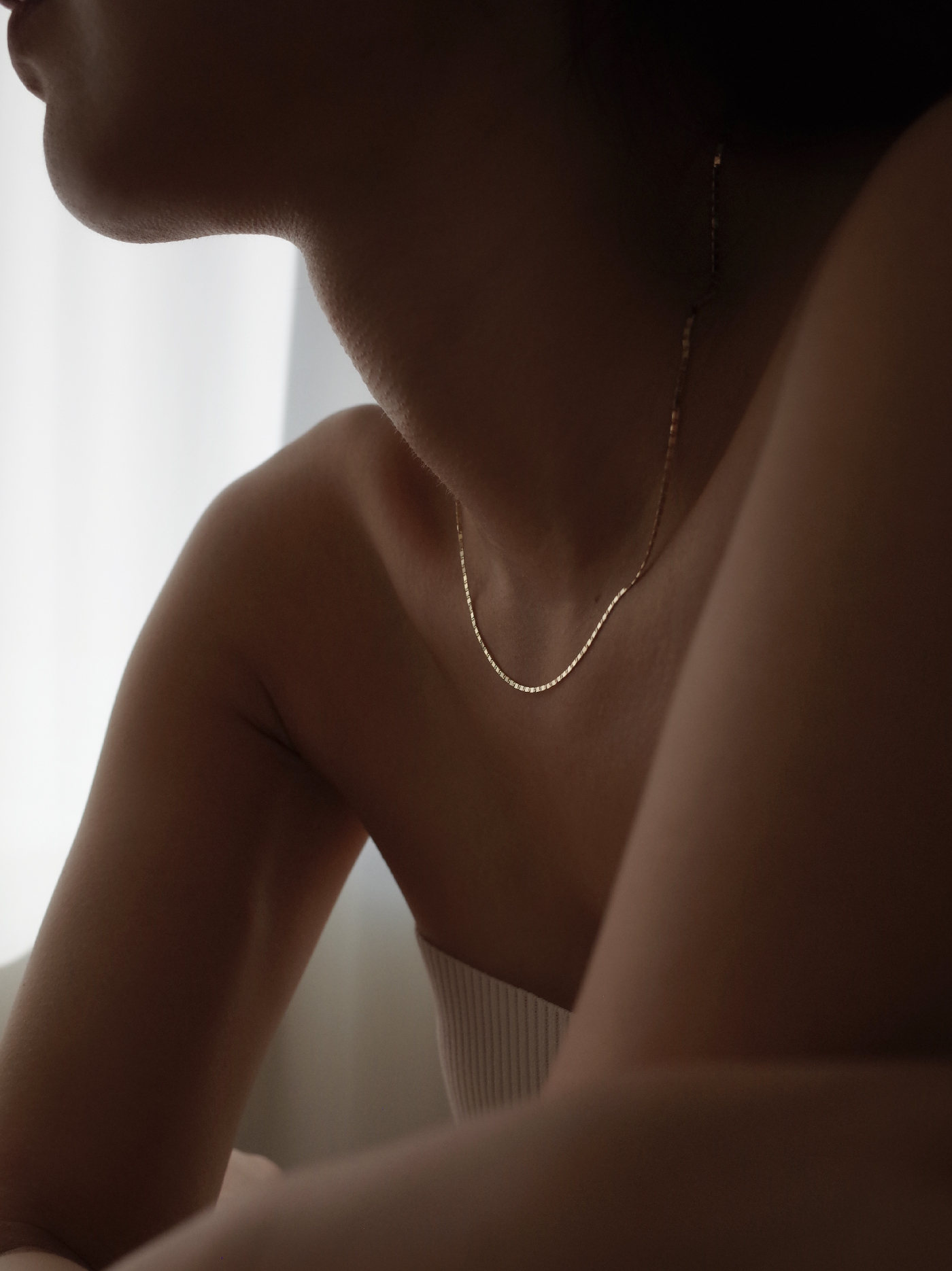 SKIN CHAIN IV - 플랫한 유닛으로 피부에 자연스럽게 밀착되며 힘을 뺀 듯한 광택감의 체인